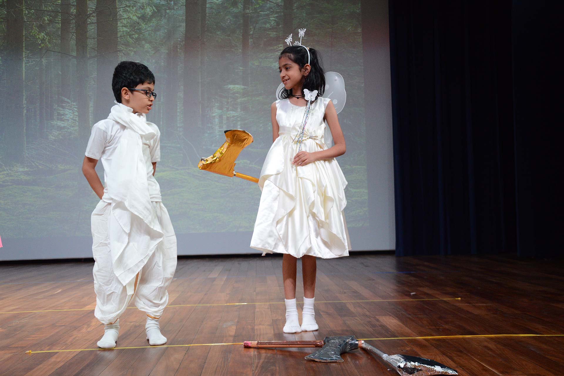 One of the highlights of the program was a skit based on the timeless tale of "The Honest Woodcutter." In this story, a woodcutter loses his axe in a river and a goddess appears, offering him both a golden and a silver axe. True to his character, the woodcutter refuses the gifts, explaining that they aren’t his. His honesty impresses the goddess, who rewards him not only with the golden and silver axes but also with his lost one. This simple yet powerful message about the importance of honesty captured the attention of the audience.