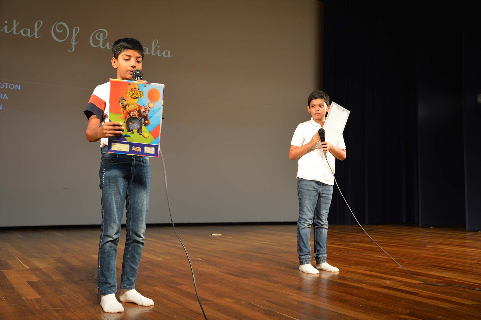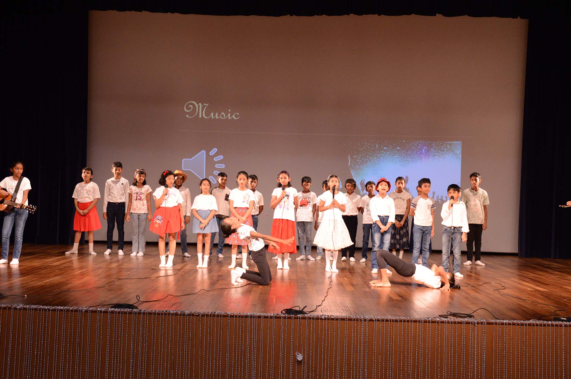 Following the welcome, the students showcased various Australian festivals, highlighting their cultural significance. They presented interesting insights into celebrations such as Adelaide festival, The Melbourne International Comedy Festival, Parrtjima and Byron Bay Bluesfest, emphasizing the rich traditions and customs associated with each festival. One of the highlights of the program was an energetic performance of the famous Australian bush dance. The students showcased their dancing skills, involving the audience in this traditional form of celebration, which is characterized by lively music and fun group interactions. Next, the students shared News, sports news and incredible facts about Australian festivals. They captured the audience’s attention with stories about unique festival activities and their historical backgrounds, demonstrating their thorough research and enthusiasm. To engage the audience further, quiz masters conducted an interactive quiz . Participants eagerly answered questions, and prizes were awarded to those who answered correctly, adding an element of excitement to the event. The program then shifted to a medley of songs by renowned Australian pop singer Sia, performed by the students. Talented musicians played the guitar, violin, and keyboard, creating a beautiful melody that resonated with the audience. To enhance the performance, two students showcased their gymnastics skills, adding a dynamic visual element to the musical presentation. The event concluded with a heartfelt vote of thanks, where a student acknowledged the hard work of the students and the support from parents and staff. Overall, the program was a vibrant celebration of Australian culture, showcasing the students’ talents and their understanding of the country’s rich festival heritage.