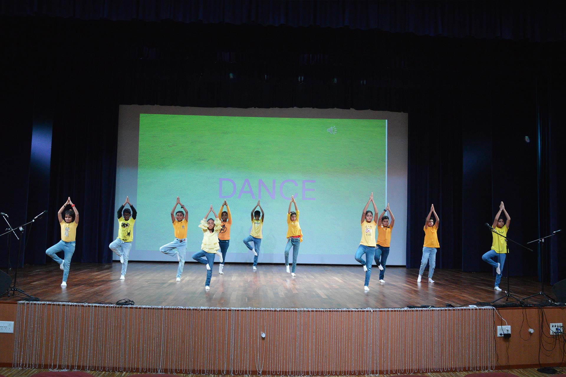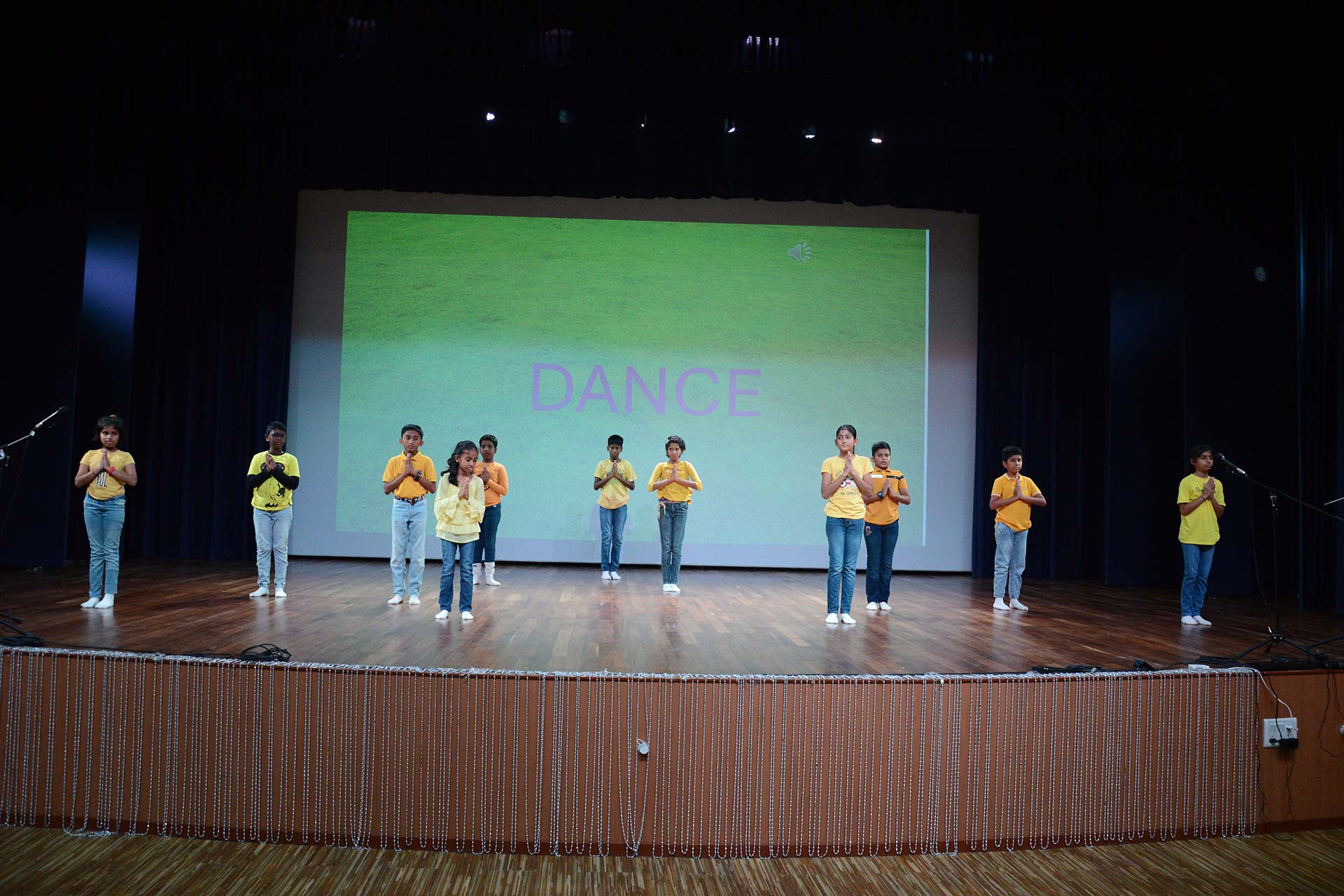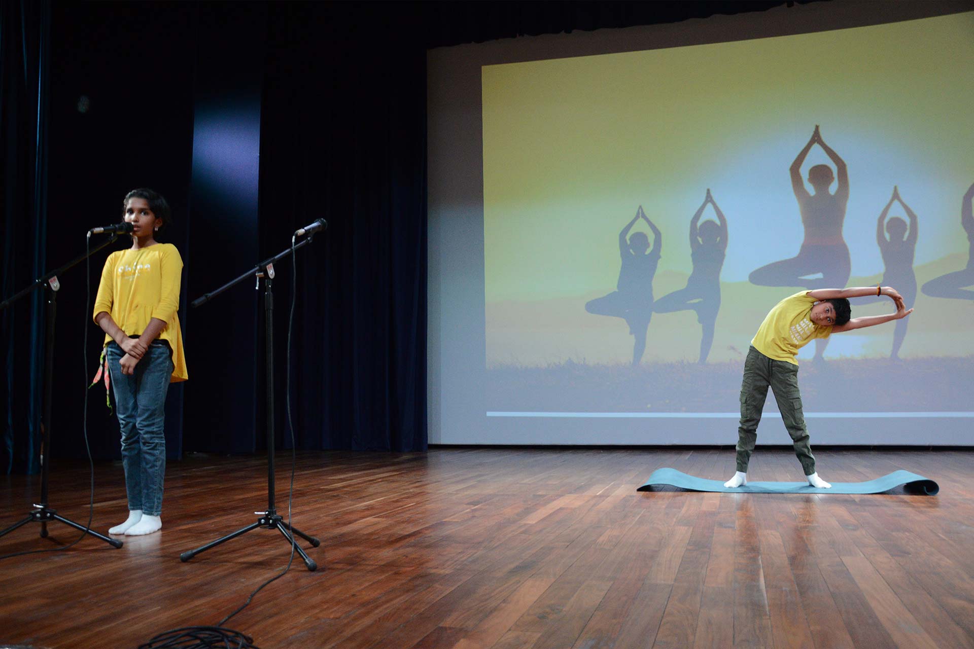 The assembly continued with a song celebrating friendship, which further emphasized the theme of well-being through strong social connections. The students then performed a unique dance that incorporated yoga moves, blending creativity with physical exercise. This performance showcased the versatility of yoga and how it can be integrated into various forms of expression.
