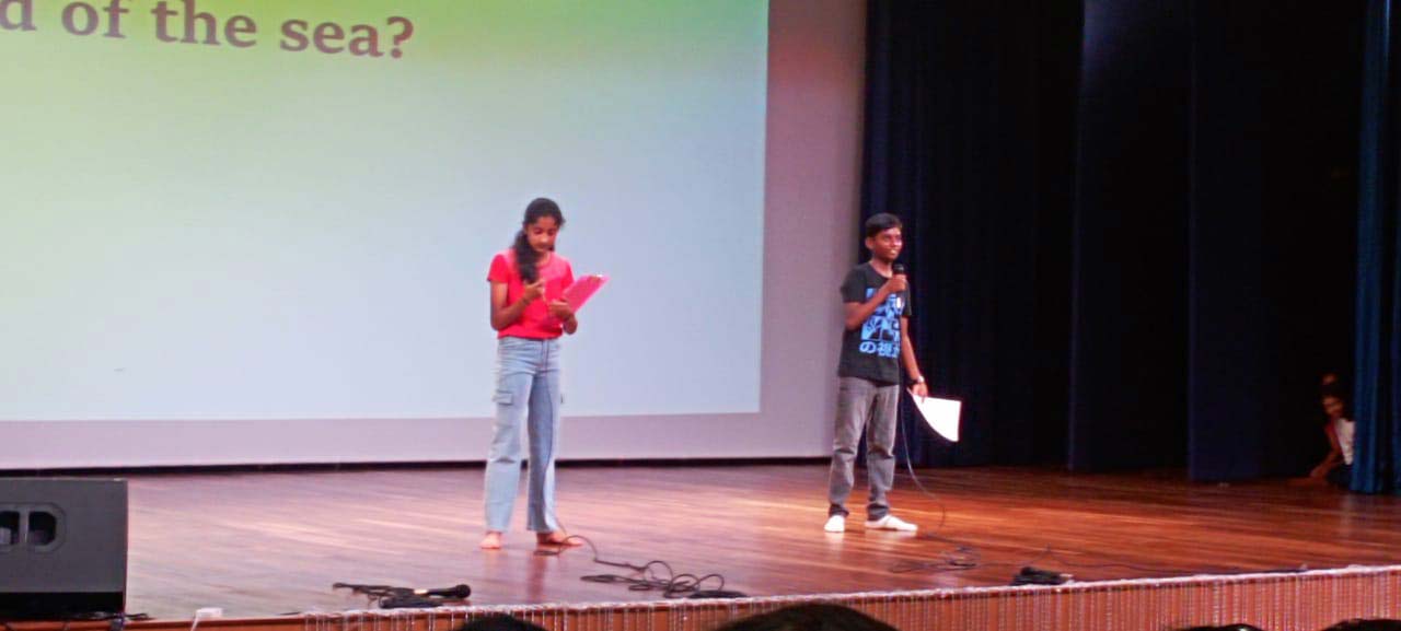 After the skit, students reported the news for the day. They presented an array of news including national, international, sports, and weather updates. Then came the quiz that kept the audience actively engaged. A bumper question was thrown open to all grades.