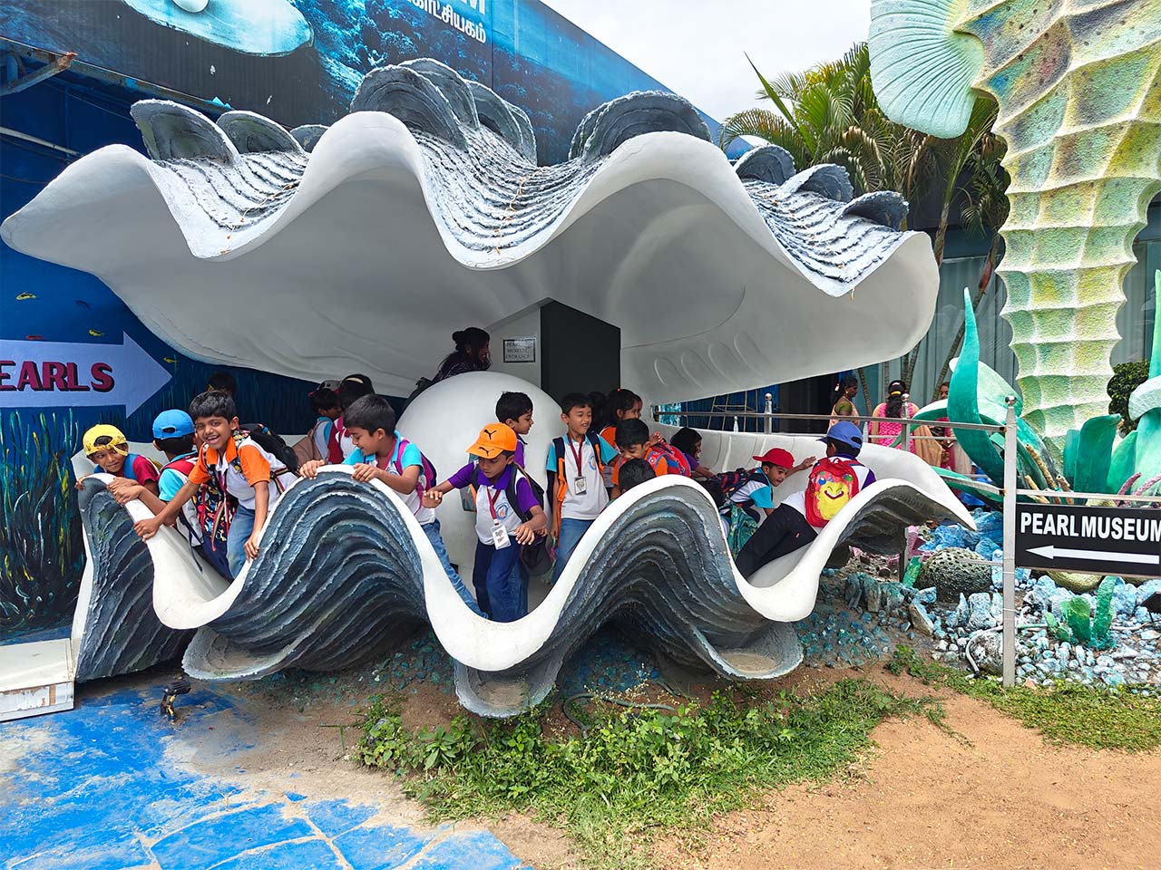 Next, students explored the Fish Aquarium, observing colourful clownfish, angelfish, and other marine species, learning about underwater ecosystems. At the Pearl Museum, they discovered how pearls are formed inside oysters and admired South Sea pearls in both raw and crafted forms.