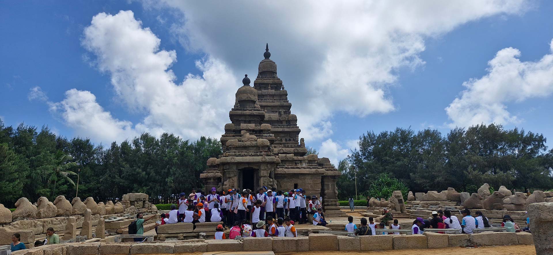 The group also explored the Tiger Caves, imagining their historical significance and ancient uses. After sightseeing, students enjoyed a delicious vegetarian buffet lunch at a nearby beach resort, followed by an afternoon of outdoor games and relaxation. The trip concluded with cheerful memories, making it both educational and enjoyable.