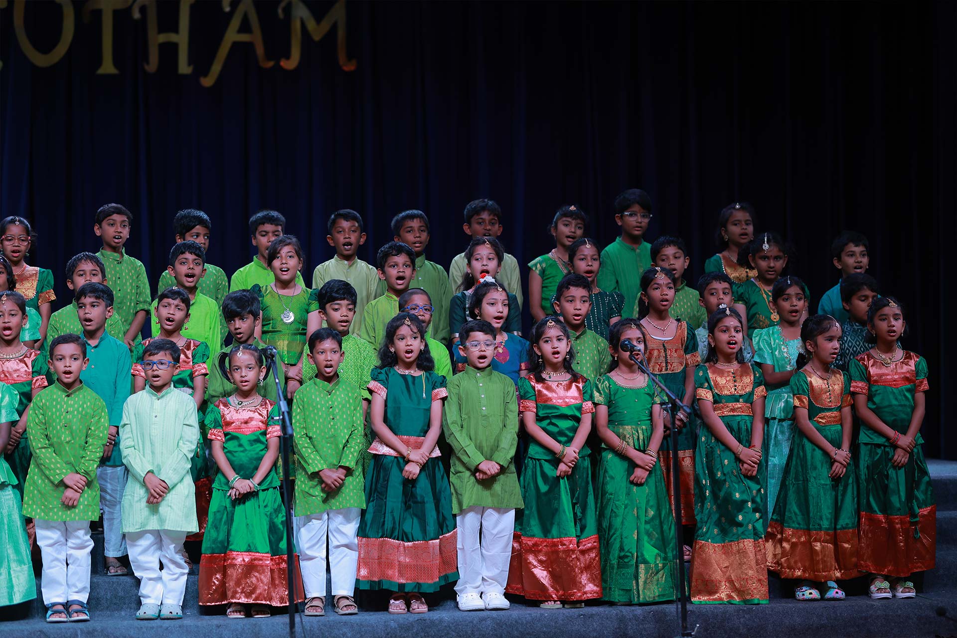 Students of Grade 1 presented a delightful range of songs, from compositions highlighting the greatness of Tamil Nadu to challenging pieces with intricate swaras, including the tongue-twisting Varaleela Gana Lola.