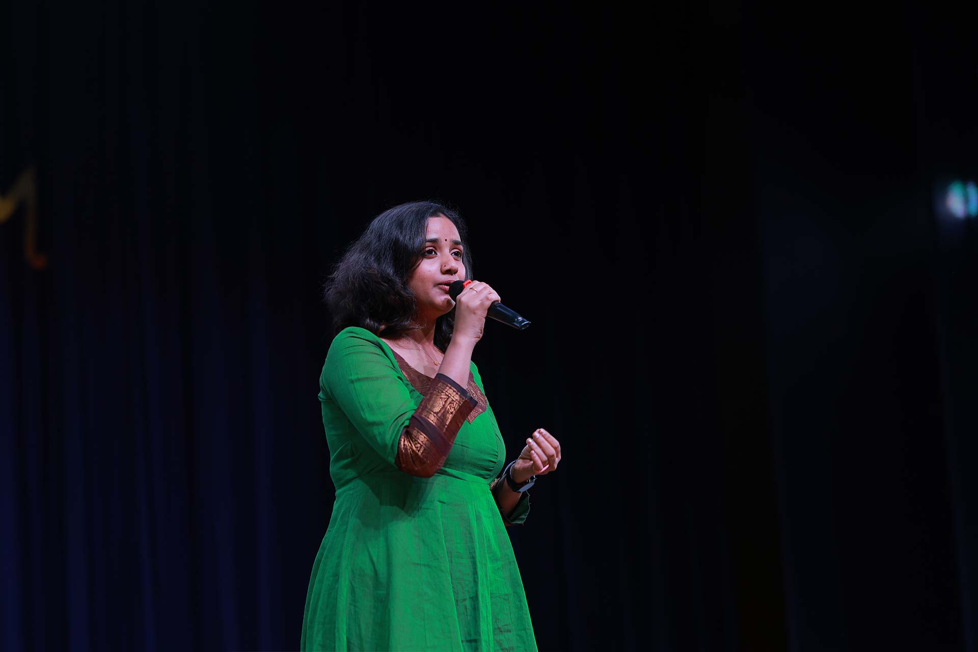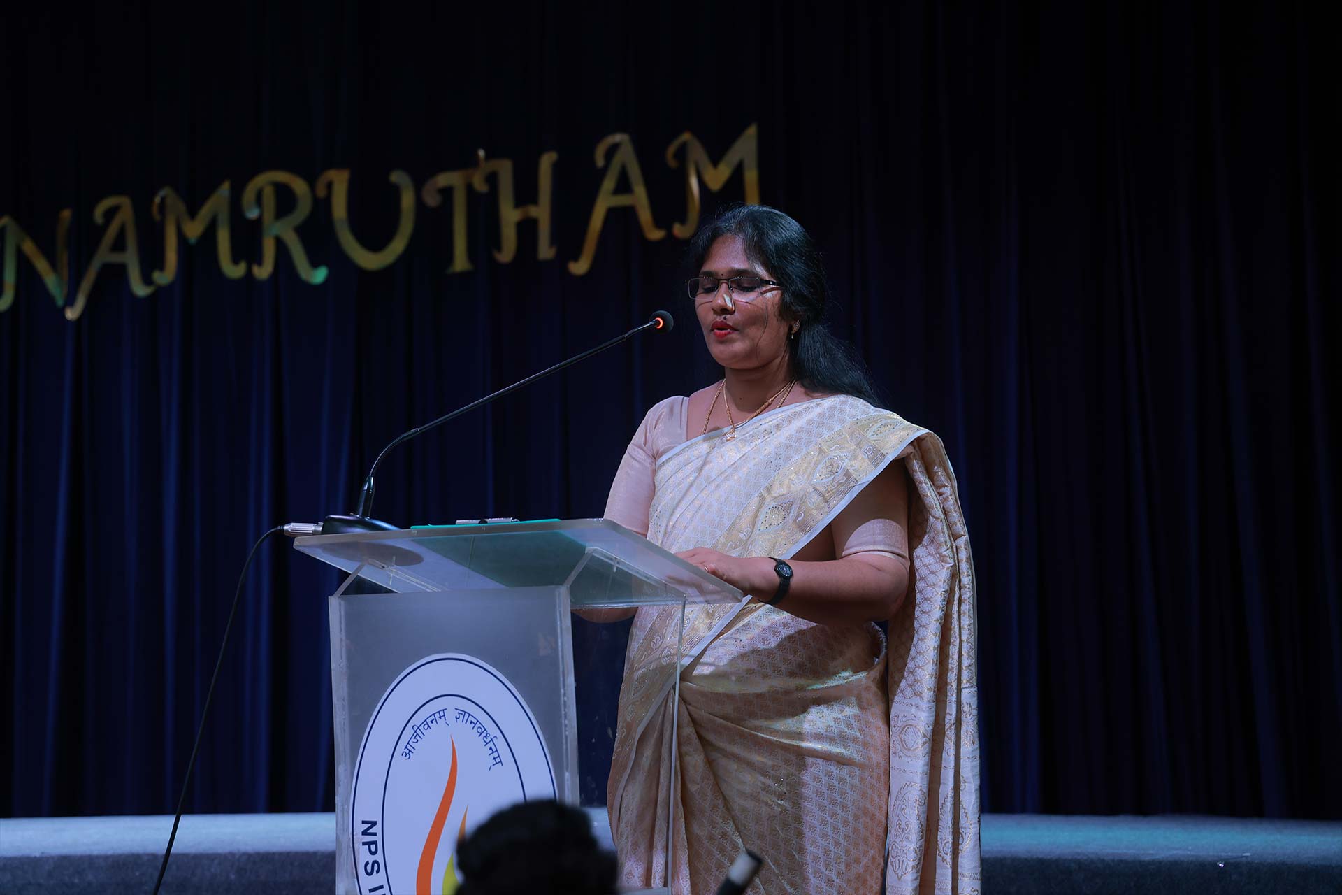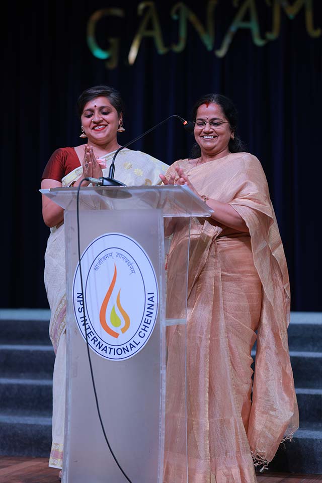 The Chief Guest, Ms. Vanathi Suresh, applauded the diverse and powerful song selections and appreciated the collective participation of all students singing in unison. She further delighted the audience by performing two beautiful songs herself, leaving everyone mesmerised.