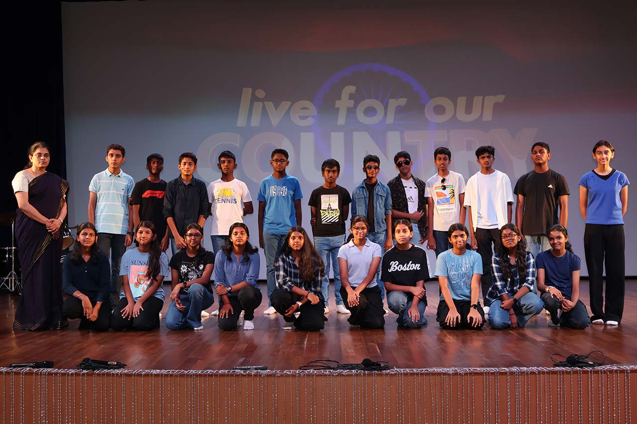 Grade 9B conducted their class assembly on the theme “Live for Our Country” with the objective of instilling in students a deeper understanding of patriotism and responsibility. The students presented a well-structured skit that combined creativity, humour, and meaningful dialogue to communicate its message effectively.