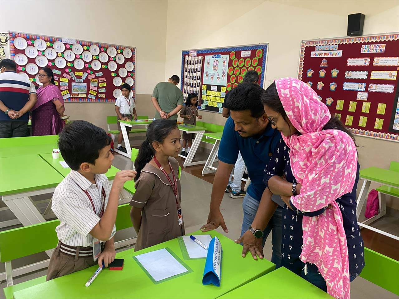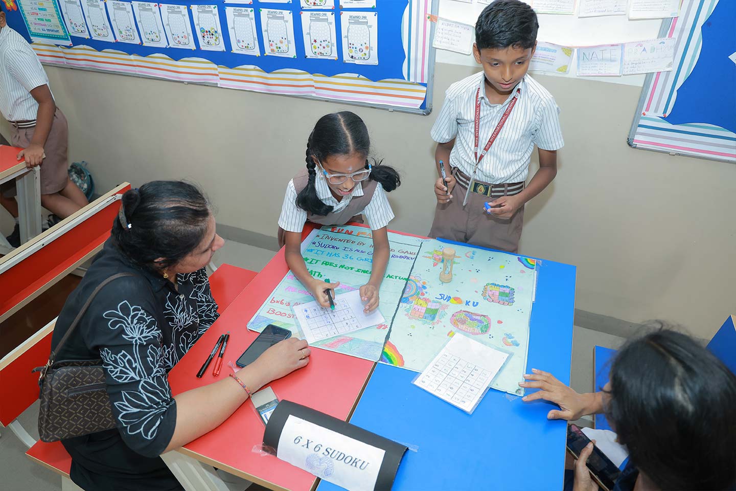 Across all grades, students confidently explained mathematical concepts through hands-on activities, puzzles, and real-life applications. Younger students focused on basic number sense, patterns, time, measurement, fractions, and data handling, while older students explored operations, factors and multiples, decimals, fractions, geometry, data representation, and financial literacy.