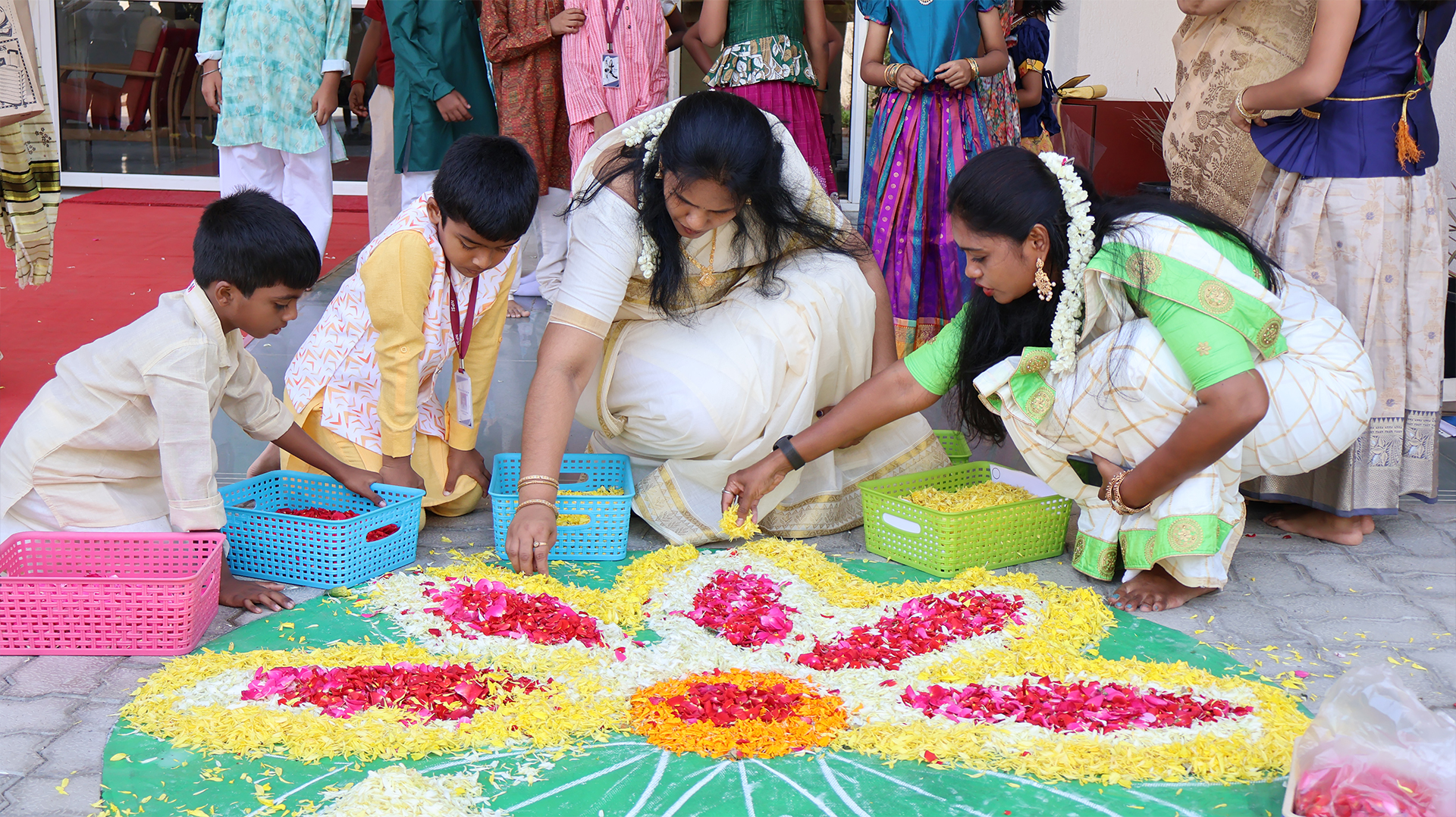 The spirit of Onam filled the school with colors, flavors, music, and cheer. The floral pookalam, the taste of payasam, and the delightful dances by students and teachers together made the day truly memorable, capturing the festive heartbeat of Kerala’s beloved festival.
