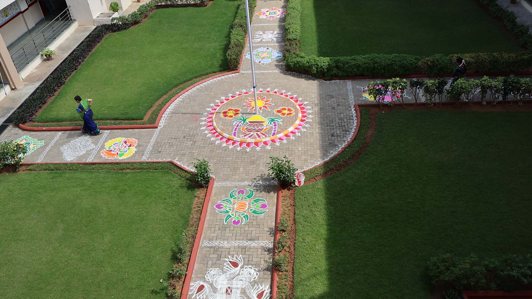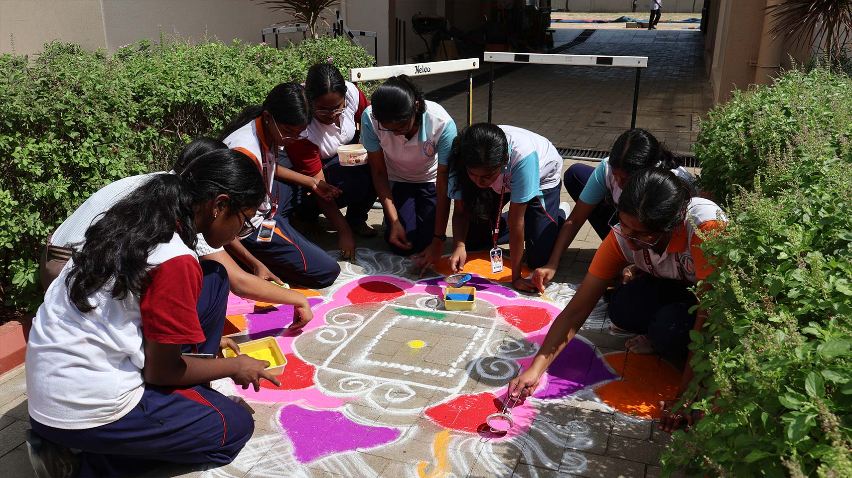Following the cultural programme, the school quadrangle came alive with the Rangoli Fest, where Grade 9 students showcased their creativity through intricate designs and vibrant colours. The campus transformed into a visual treat, reflecting the students’ imagination, patience, and artistic expression. Together, the celebrations made the day joyful, meaningful, and truly memorable for all.