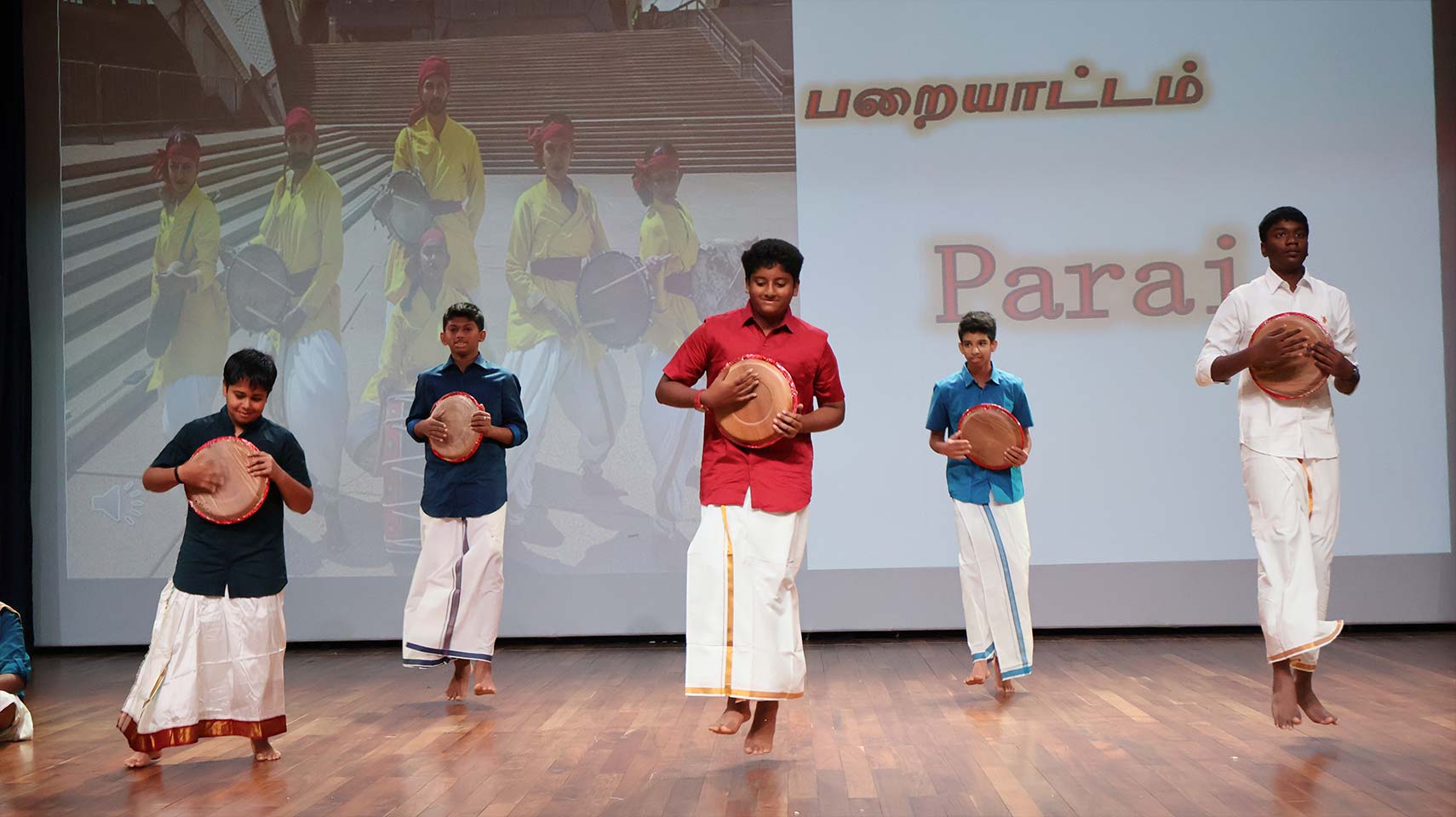 The Tamil Day celebration began on a graceful note with the rendition of Tamil Thai Vazhthu, filling the auditorium with pride and reverence for the Tamil language. Students from Grades 5 to 8, numbering around 120, participated enthusiastically in the programme. The performances that followed beautifully reflected the richness of Tamil culture. Classical Bharatanatyam and lively folk dances captivated the audience, with the colourful costumes and expressive movements adding charm to the occasion.