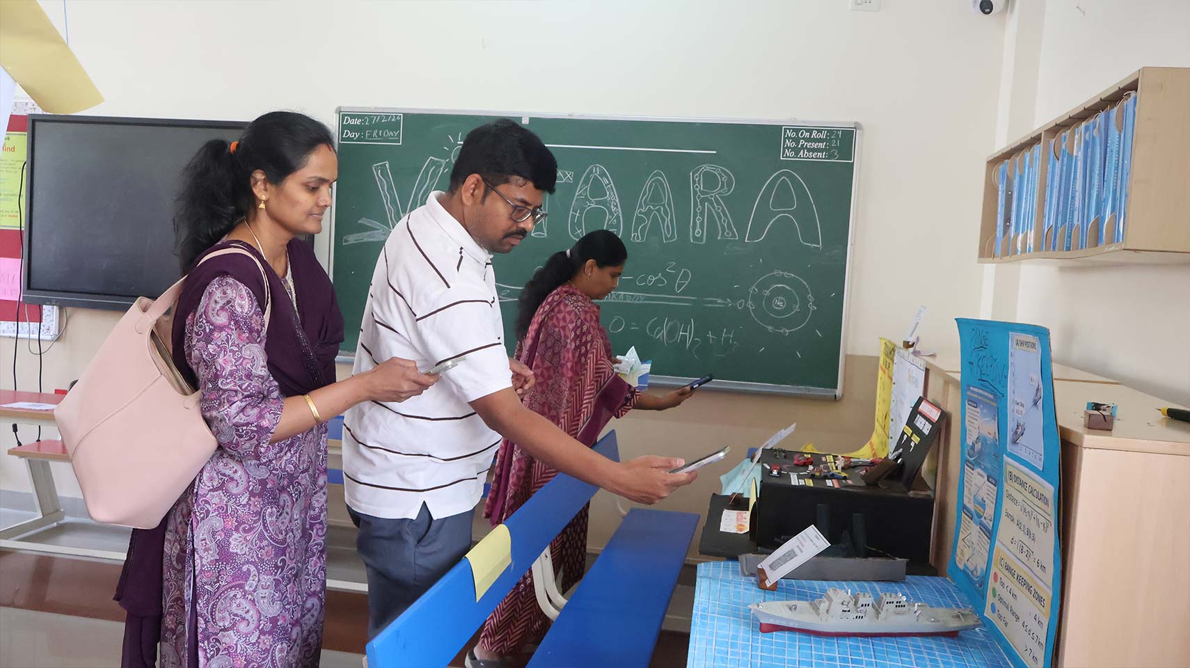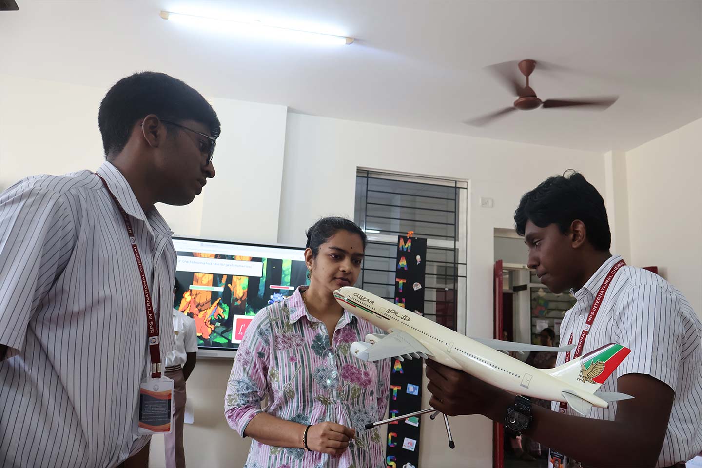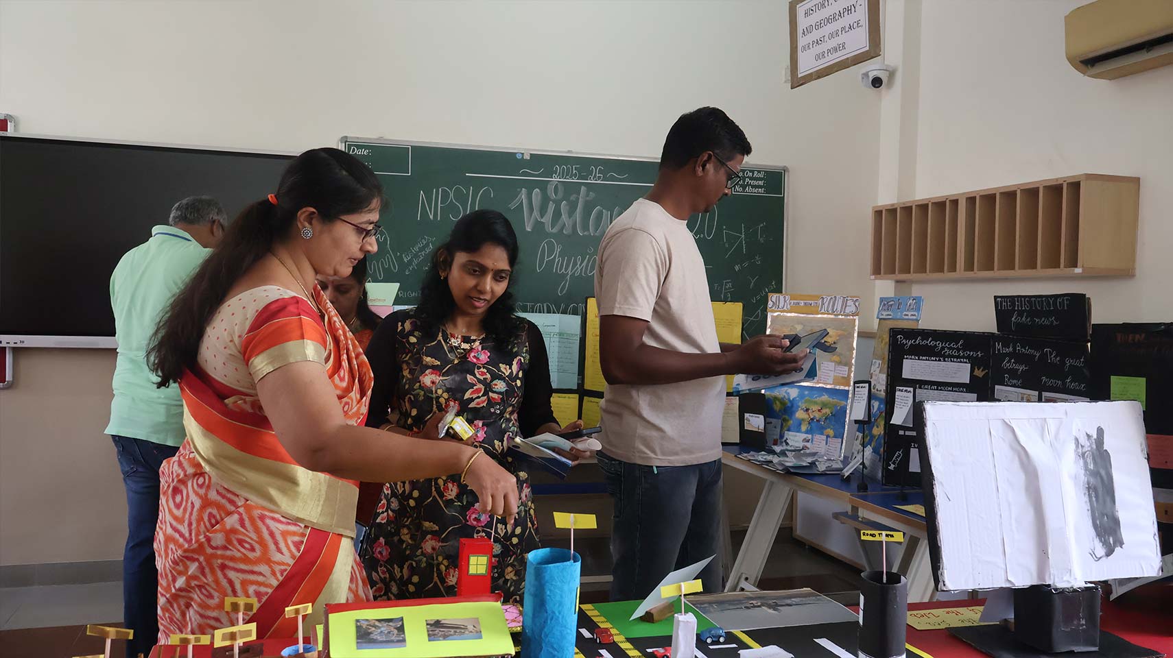 Grade 9 presented a unique silent learning visibility experience, where student projects were displayed with thoughtfully designed audio-visual support. Parents explored the exhibits at their own pace, using earphones to engage with recorded explanations, allowing for an immersive and self-guided understanding of the concepts.