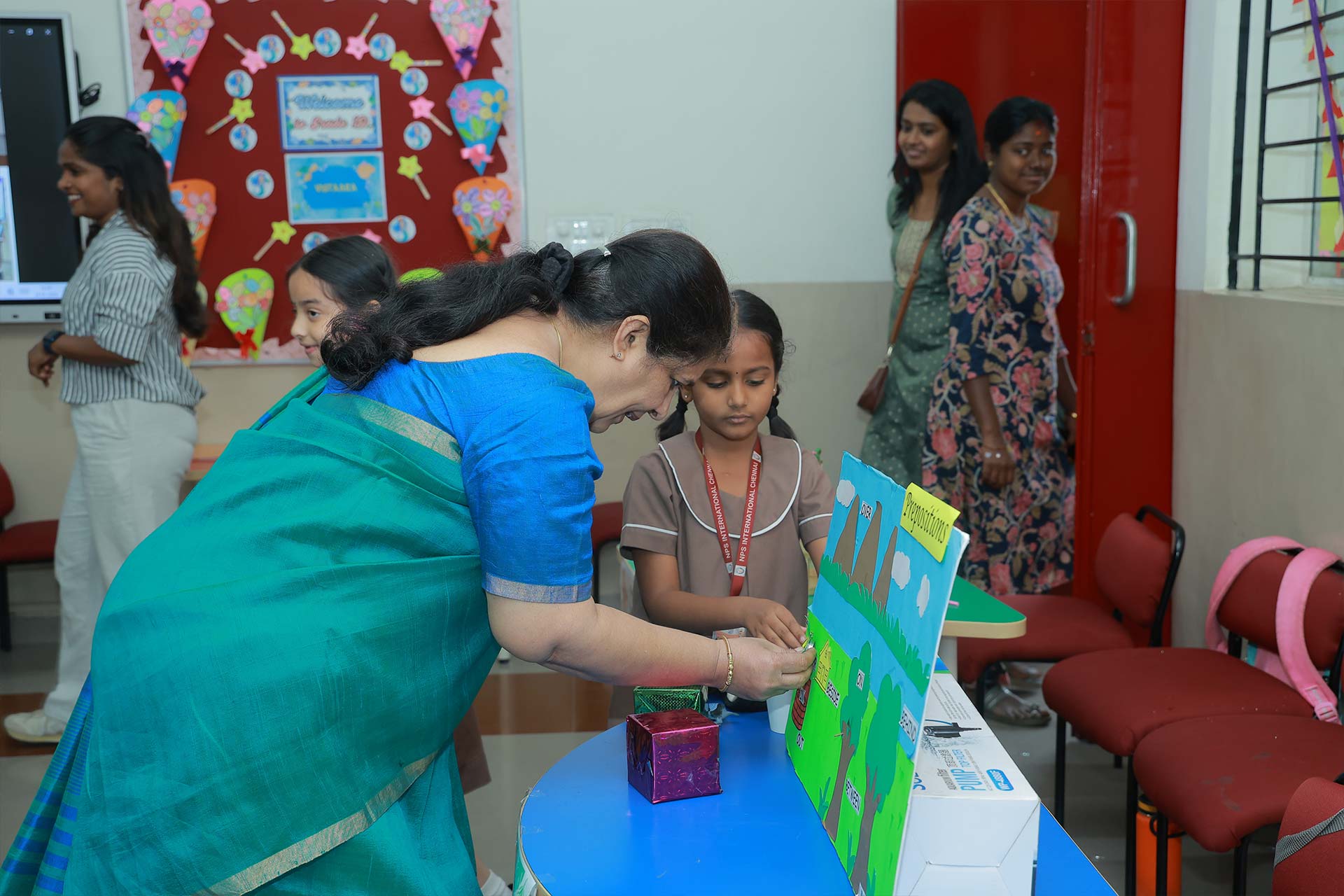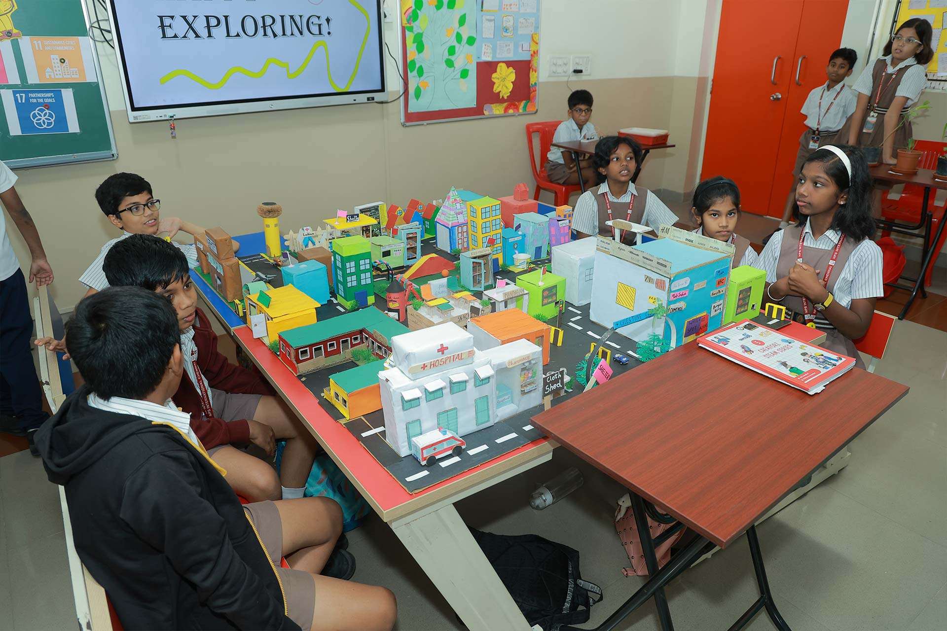 Through Project-Based Learning, students engaged in extended inquiry by addressing real-world problems. They presented their project journey, which began with understanding the Sustainable Development Goals, followed by group formation, surveys, research, model-making, data analysis, awareness creation, and brainstorming viable solutions. Students shared their learning through visual displays, live demonstrations, skits, and interactive explanations, clearly articulating the challenges faced, decisions made, and the impact of their solutions.