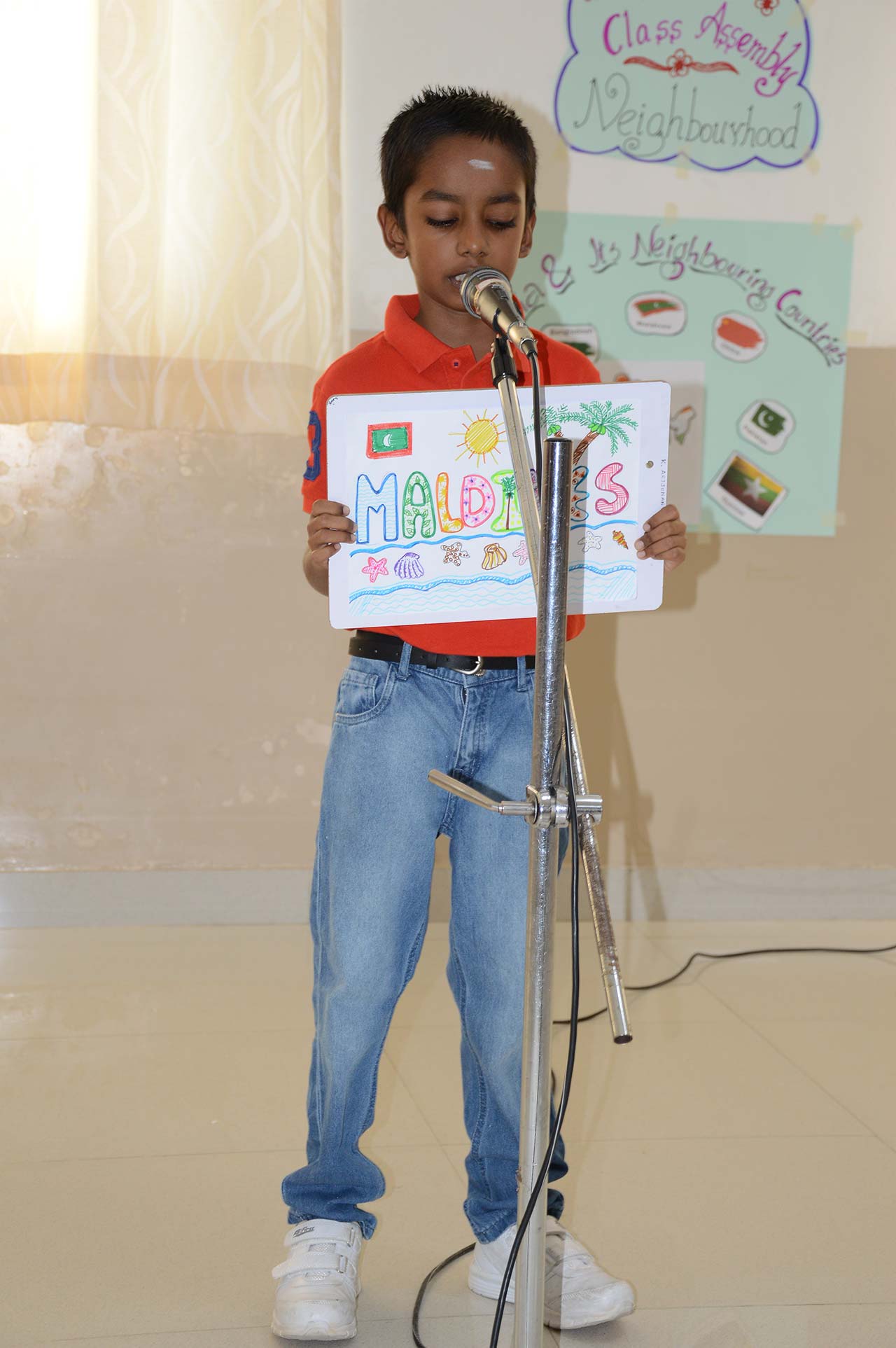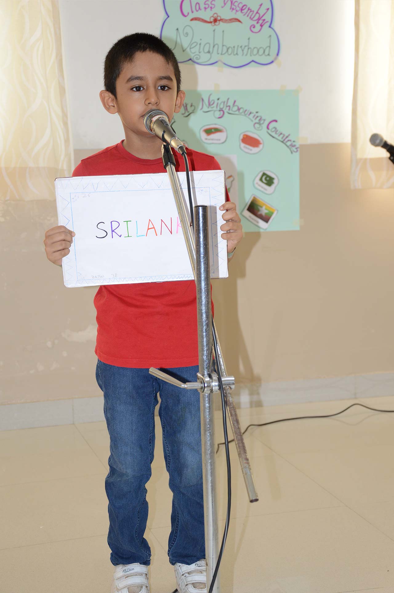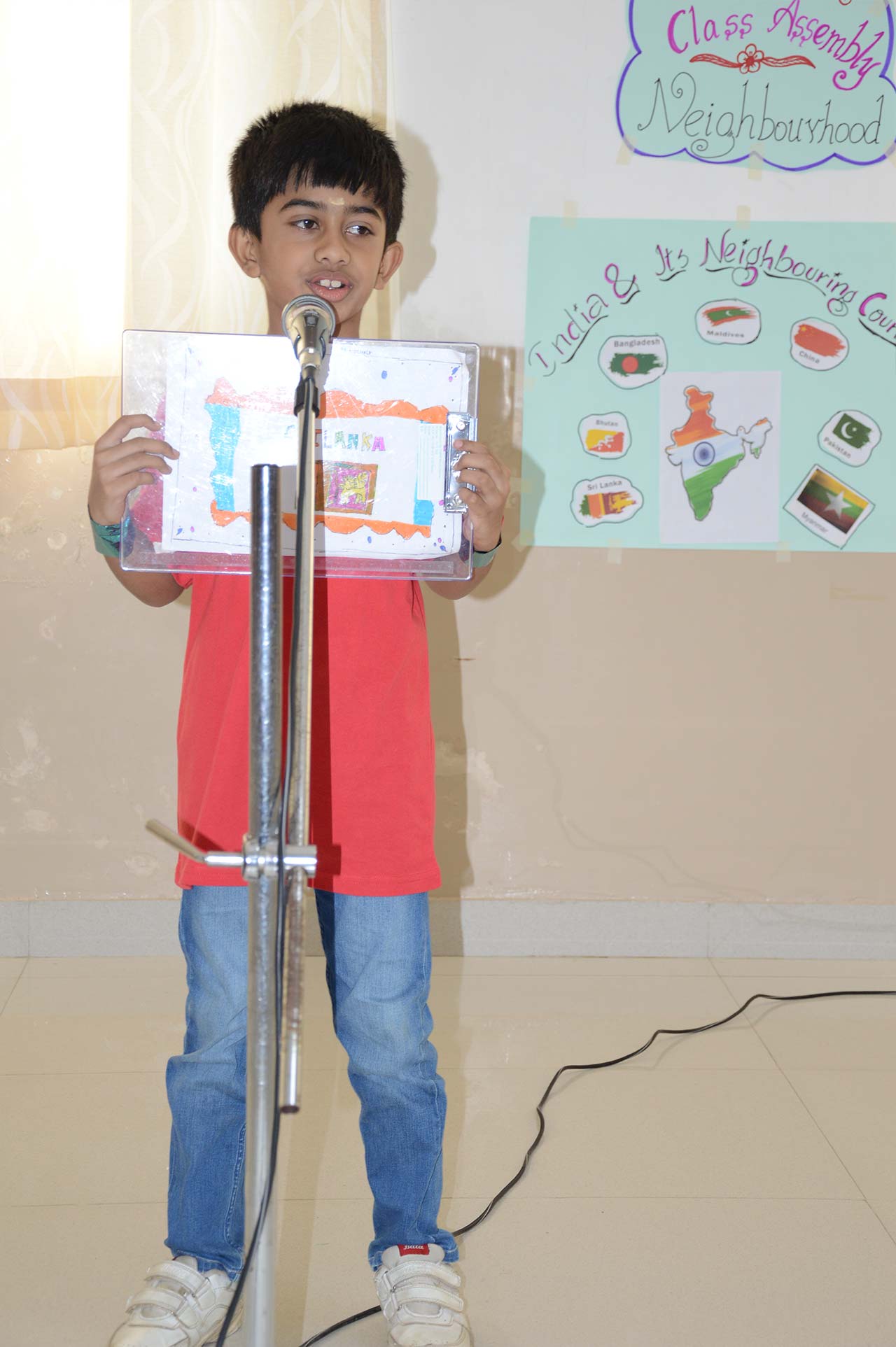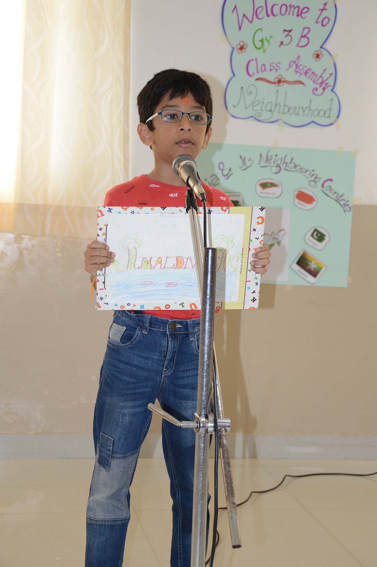 The students of 3B presented their class assembly on the topic, Neighbourhood. The students exhibited their dynamism by doubling up and playing multiple roles throughout the show.