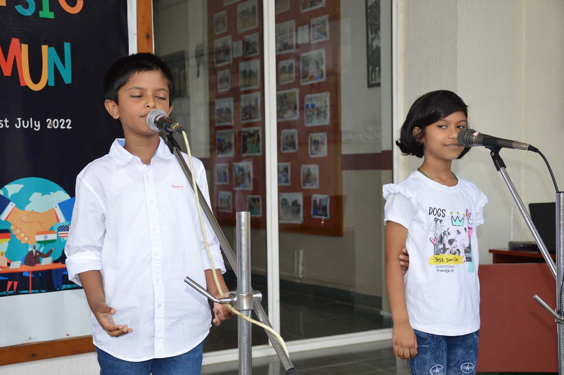 Children then donned the roles of personalities who worked together and made a mark in the global stage. They dressed up as Astronauts, Neil Armstrong and Buzz Aldrin, music directors Shankar and Jaikishan, Black Mambos of South Africa and Sachin Tendulkar, Dhoni, Sehwag and Virat Kohli of the Indian Cricket team. As each pair walked in, the audience gave loud rounds of applause to welcome and recognize the success of these personalities.