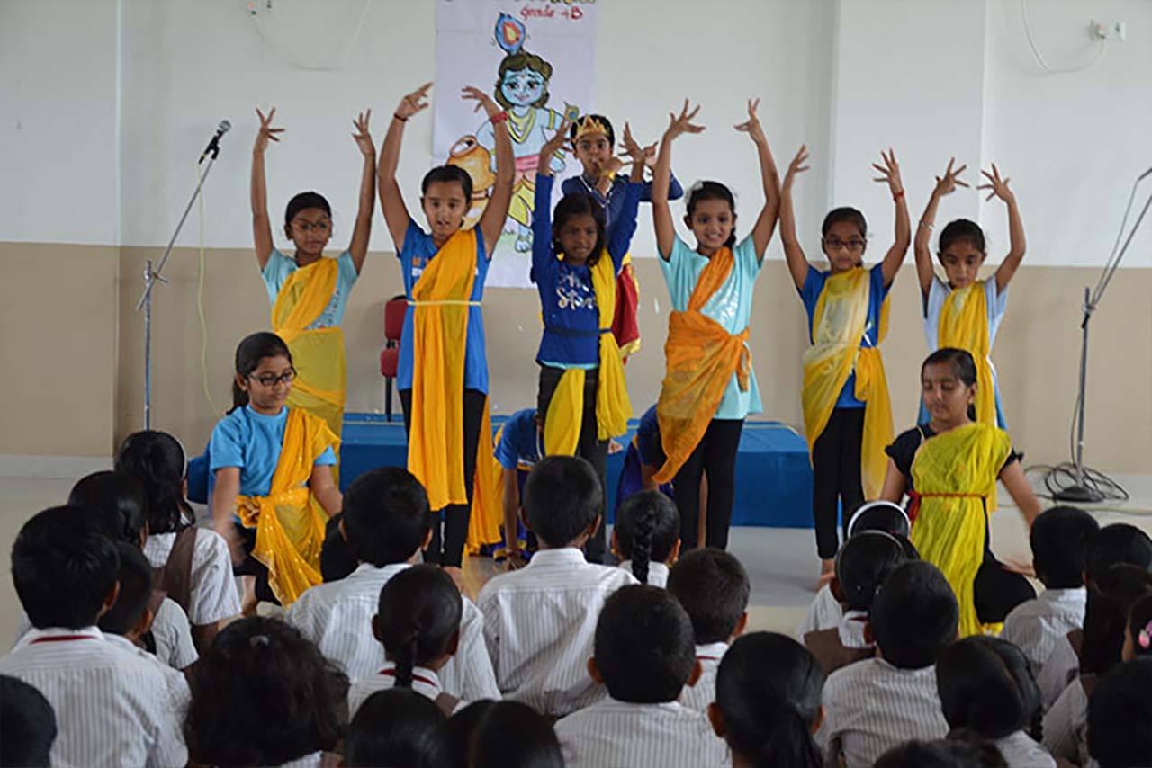 A dance number on ‘Govind Bolo Hari Gopal Bolo’ by the students dressed in blue and yellow added colour and energy to the assembly.