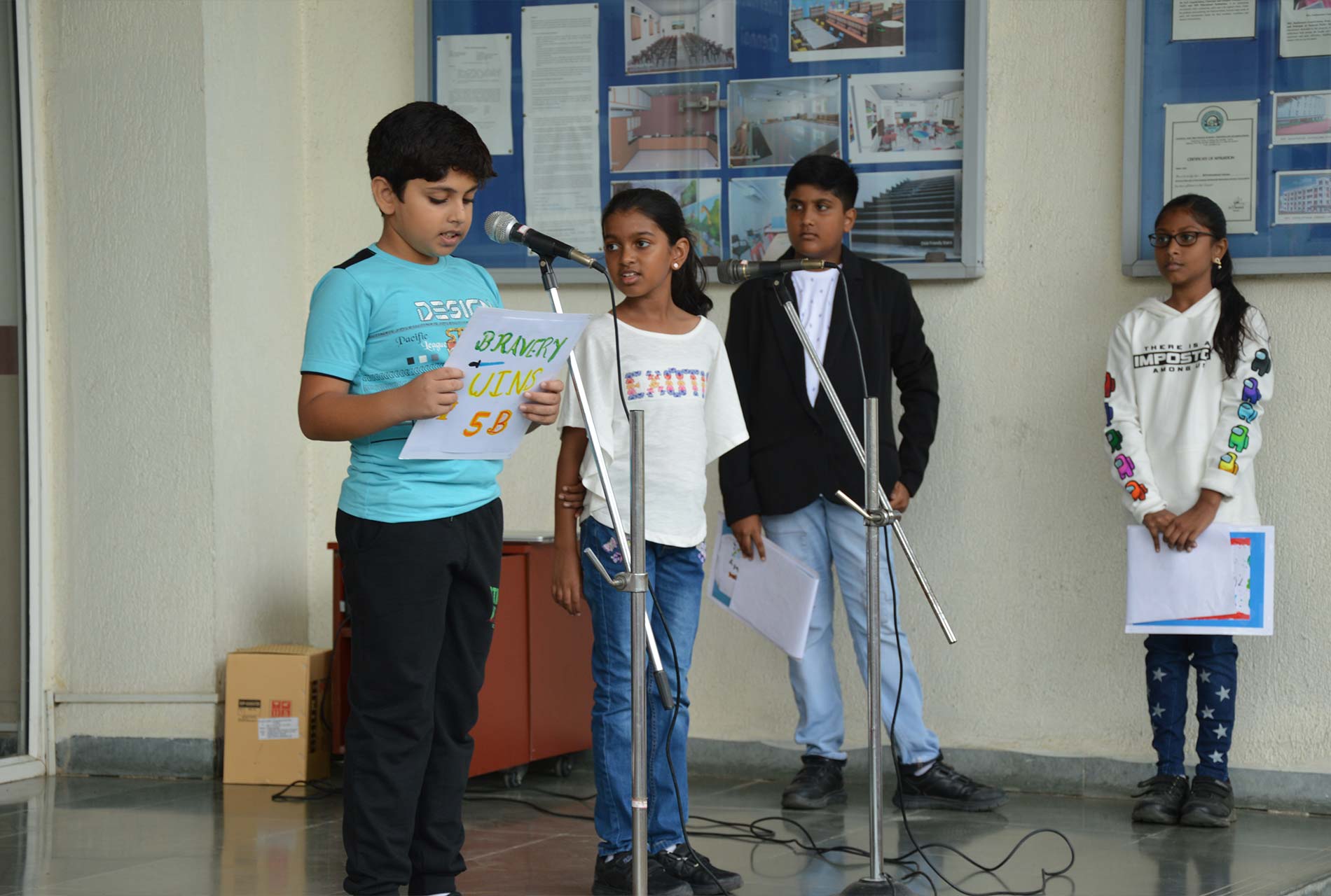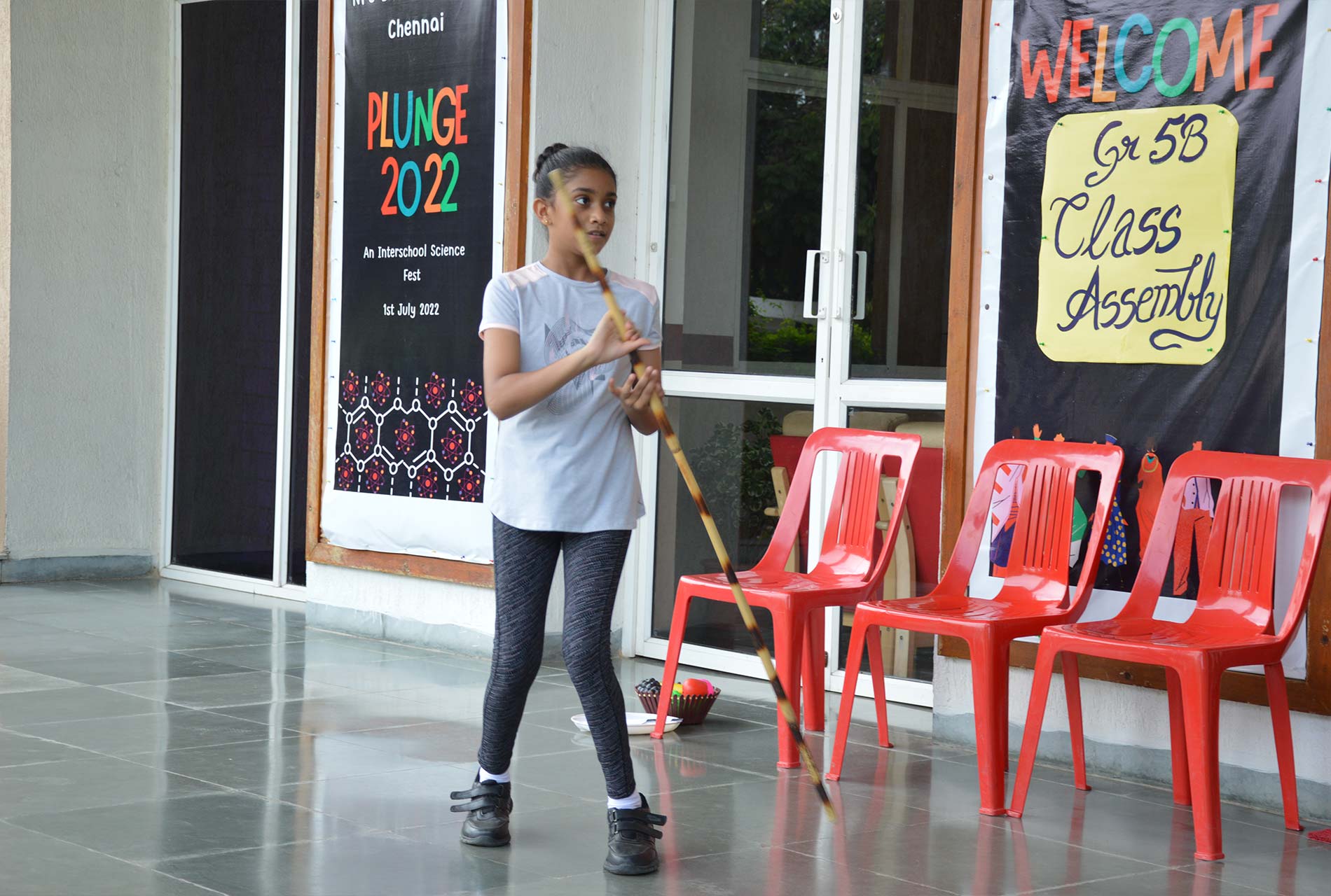 The students of grade 5B presented their assembly on the topic “Adventure”. The assembly started off with various martial art form moves, Silambam. Silambam being a favourite was well applauded by all.