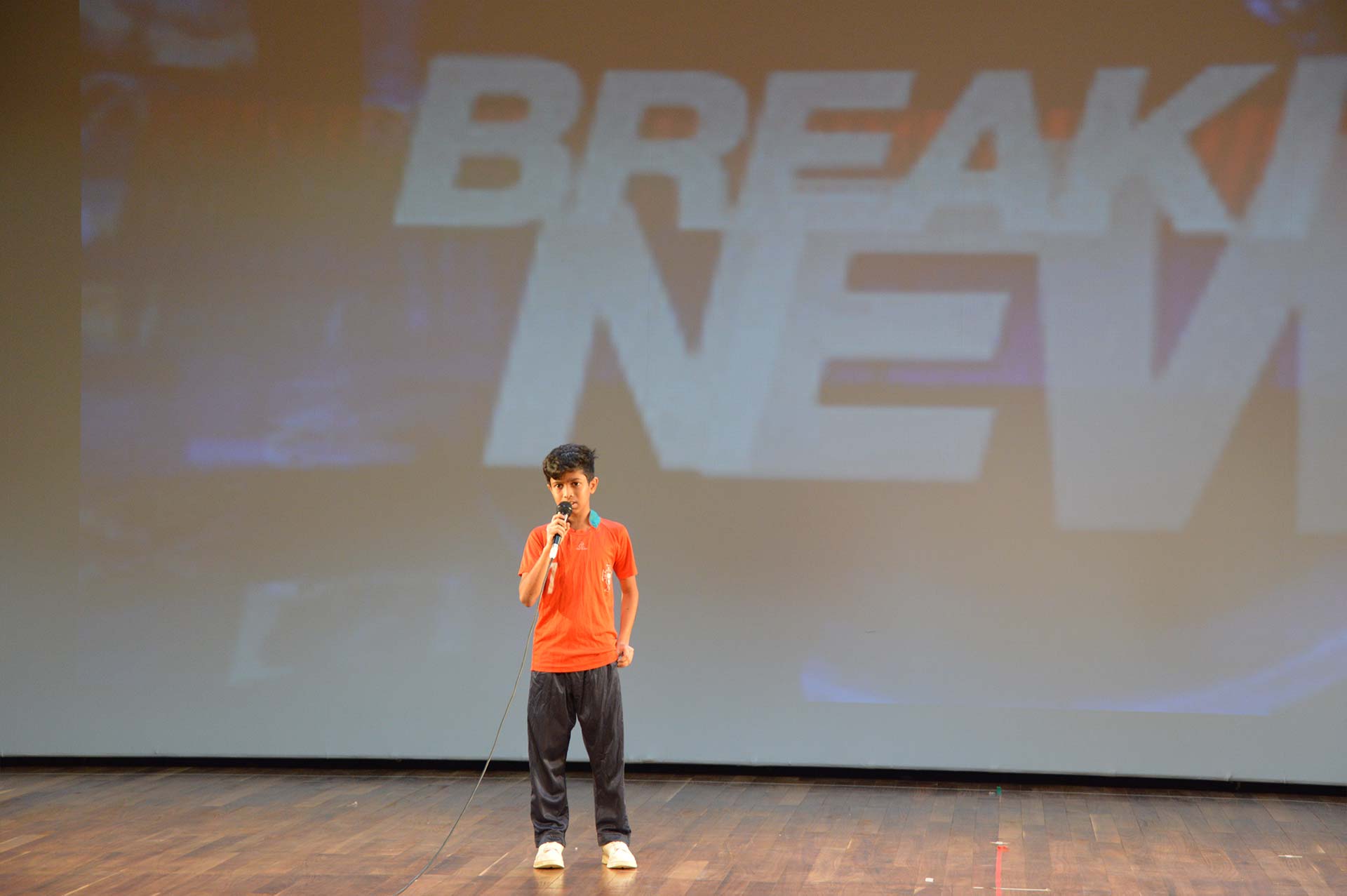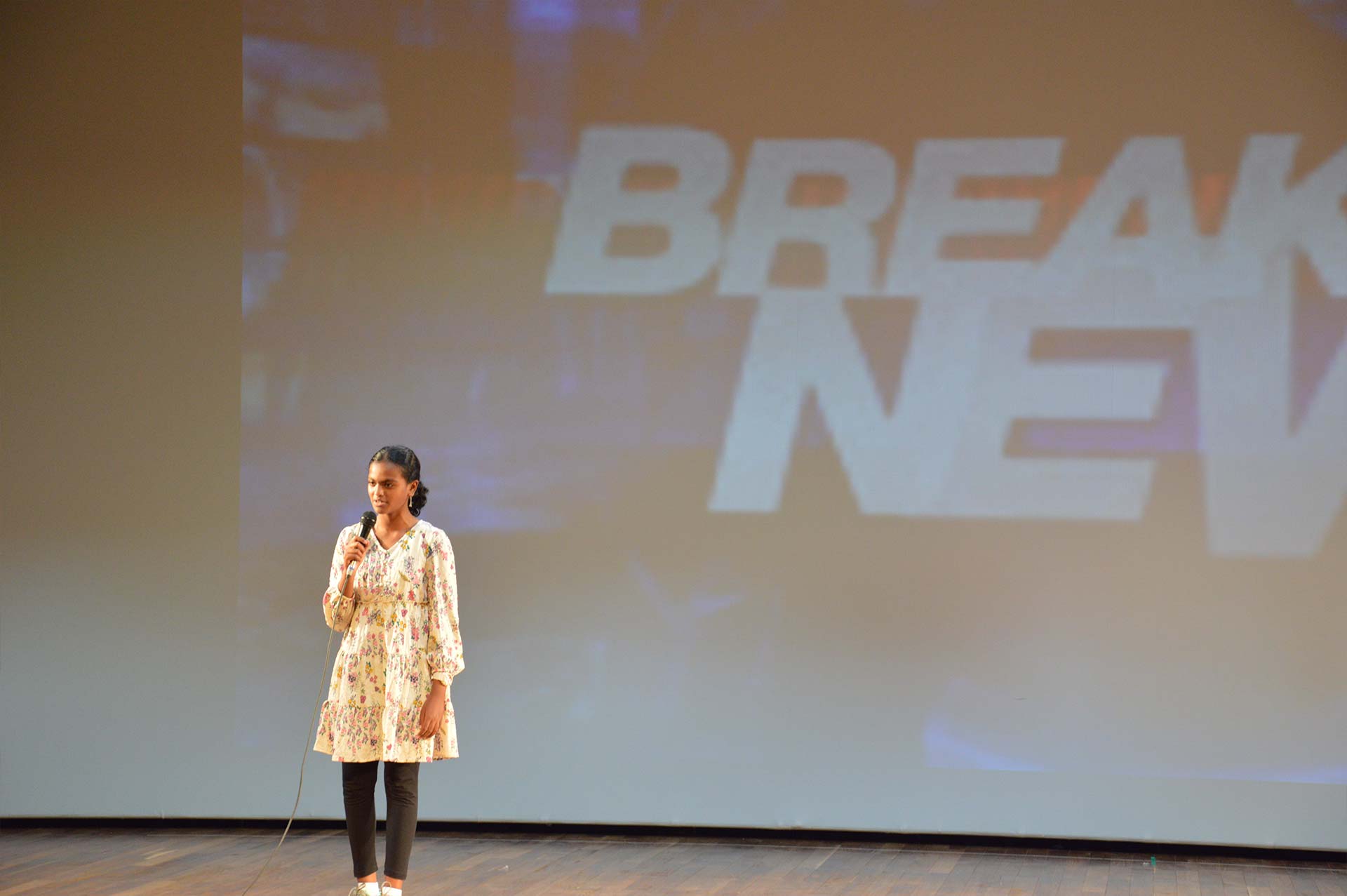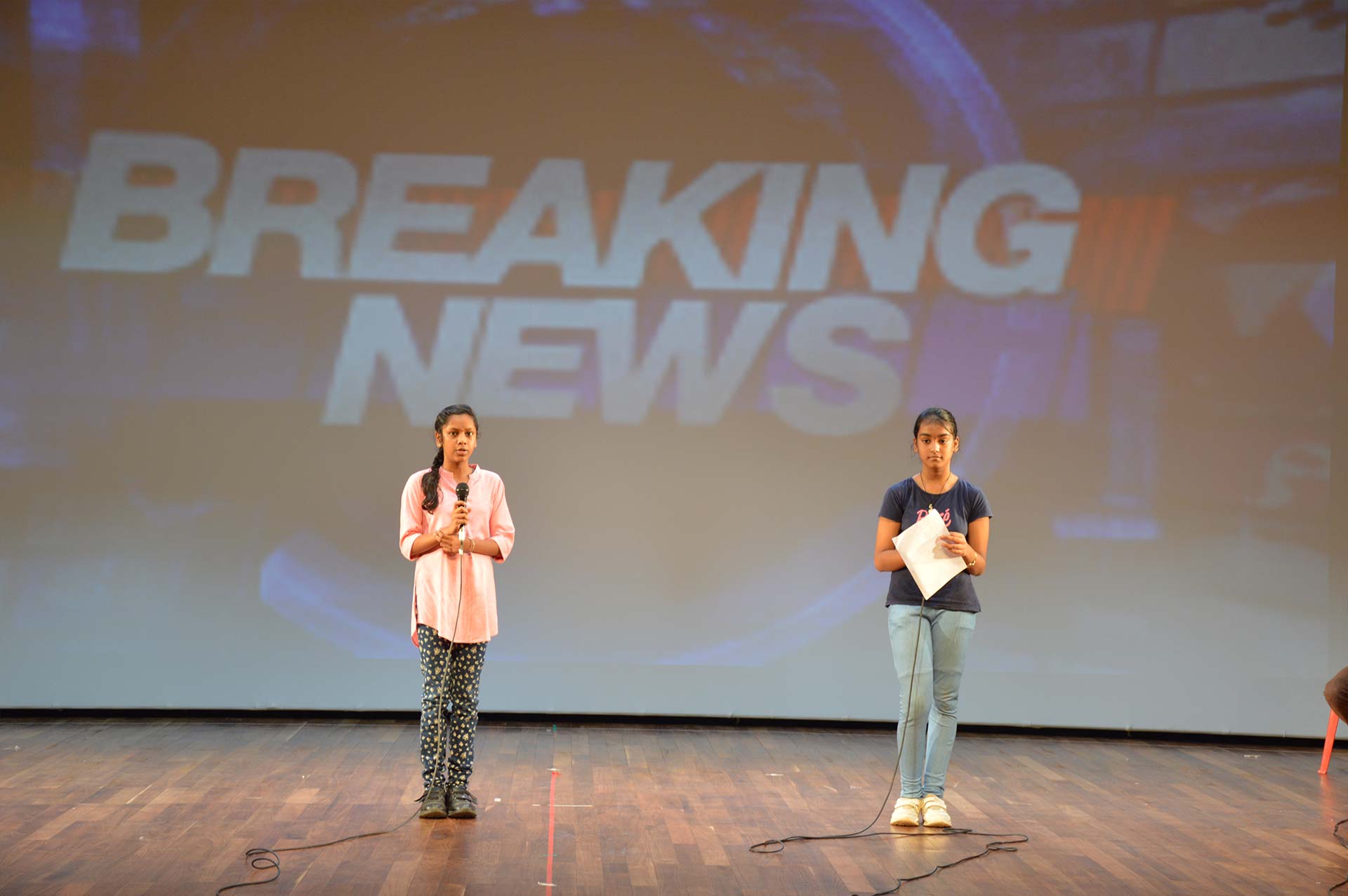 The news anchors shared updates of the happenings around us with International News, National News, State News and Sports News. An advertisement about the launching of a new iPhone [rip off on iPhone] with comments from two YouTube reviewers was presented in between the news. This was followed by an interactive session between two students sharing a few facts about television.