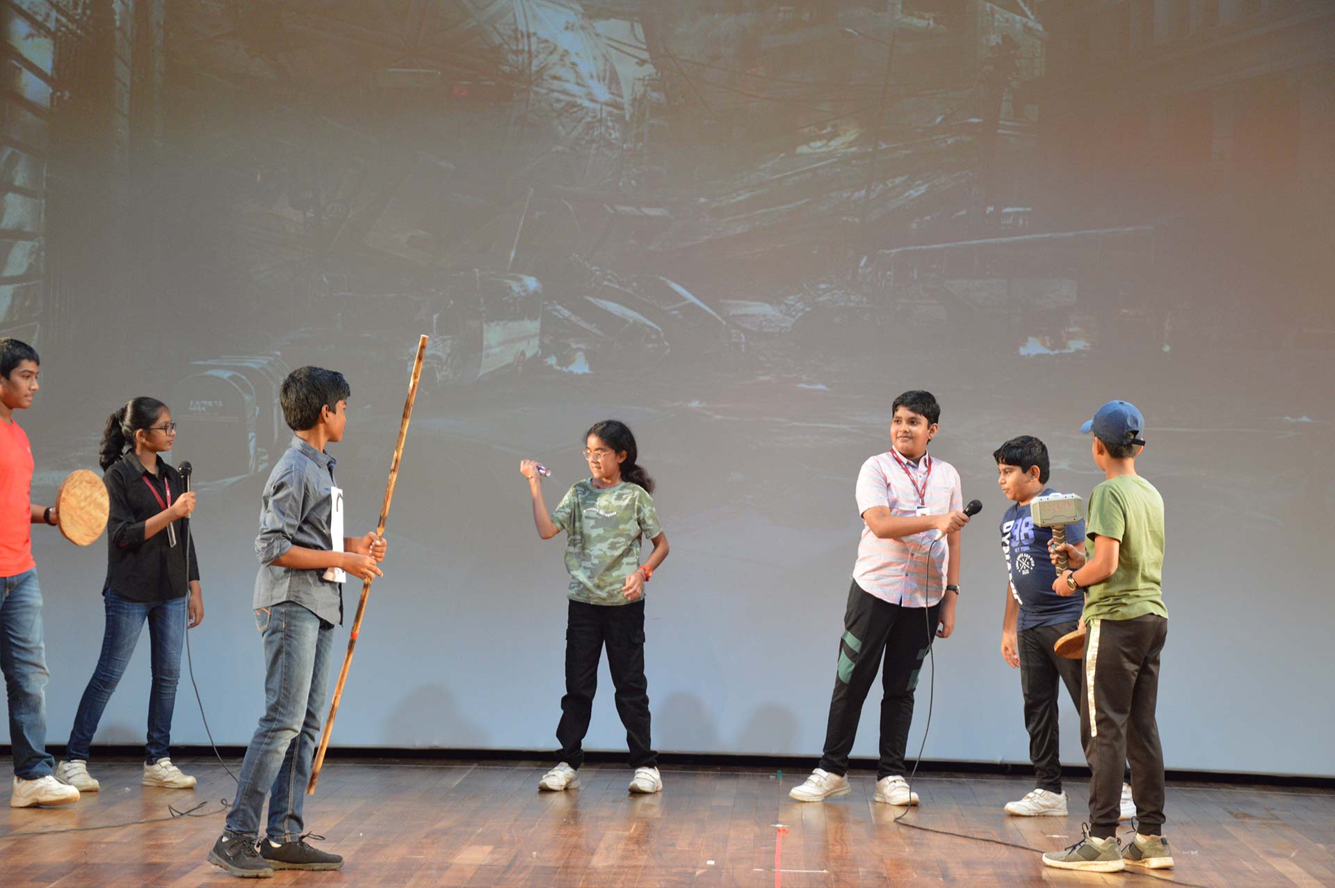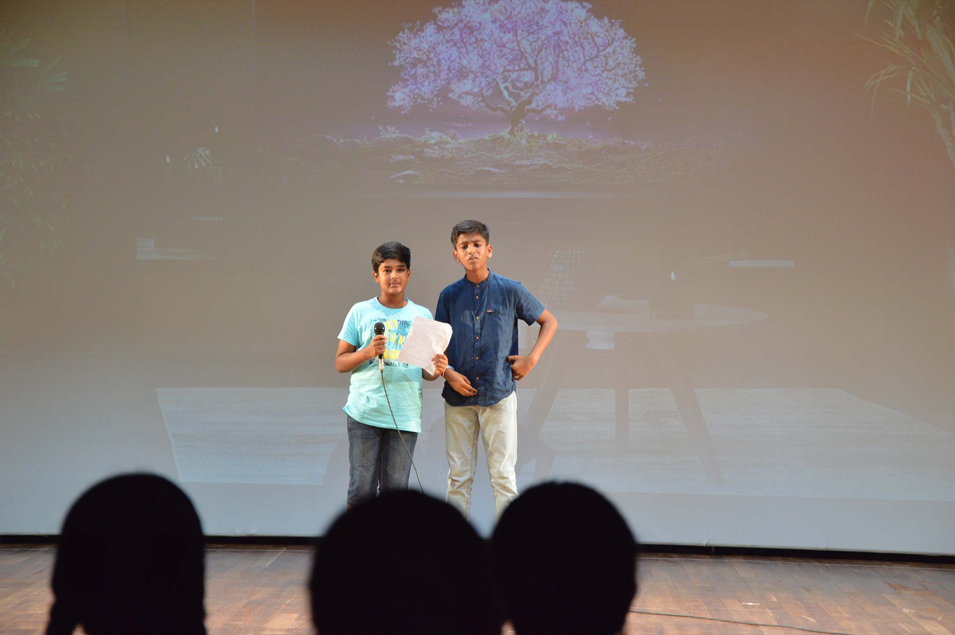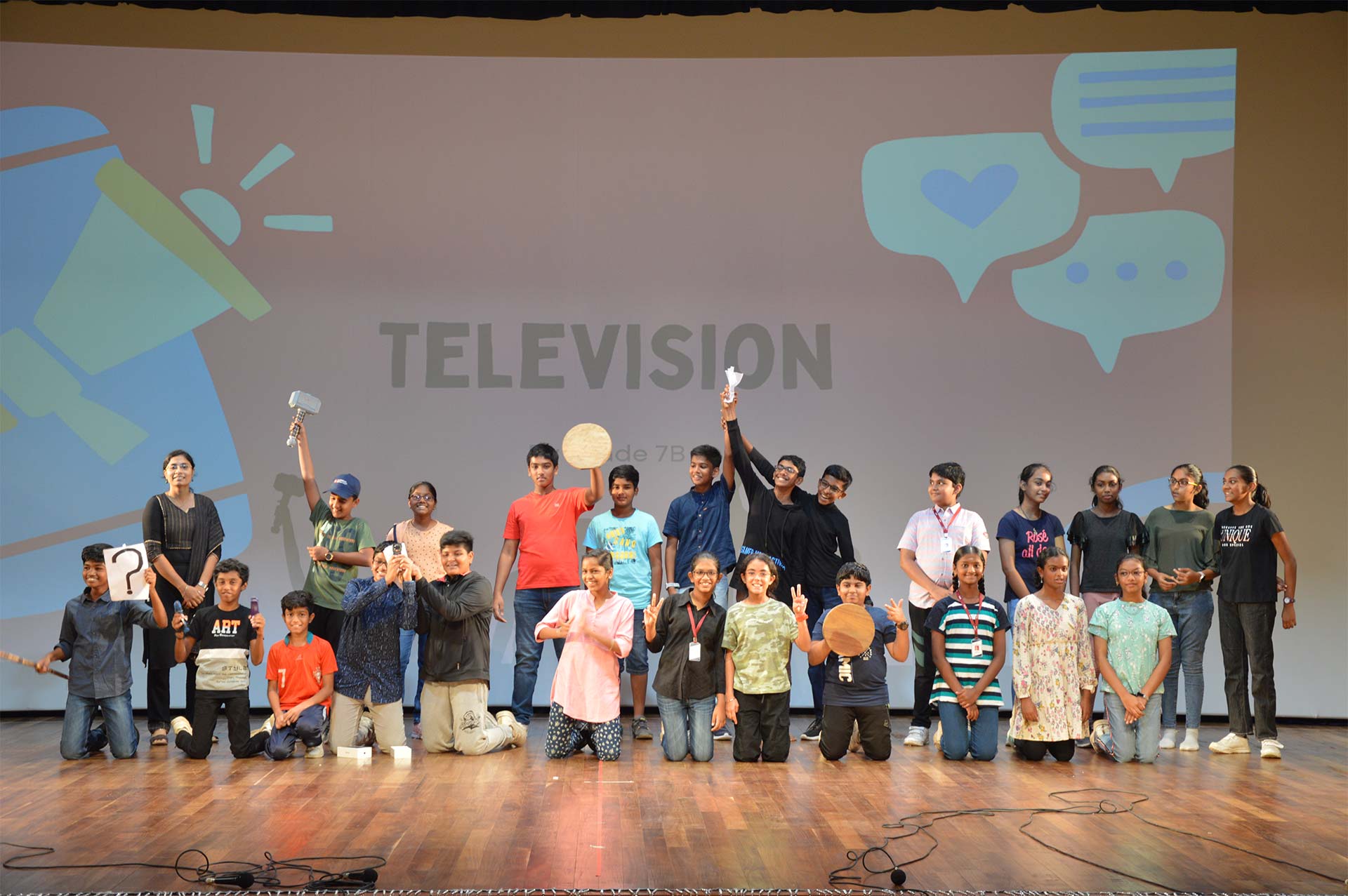 The students of 7B presented their class assembly on the topic, Television. The students exhibited their dynamism by doubling up and playing multiple roles throughout the show.