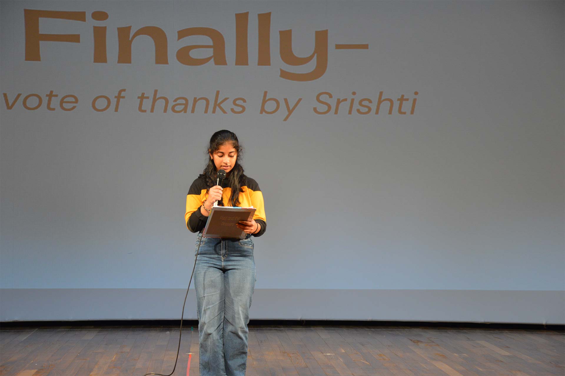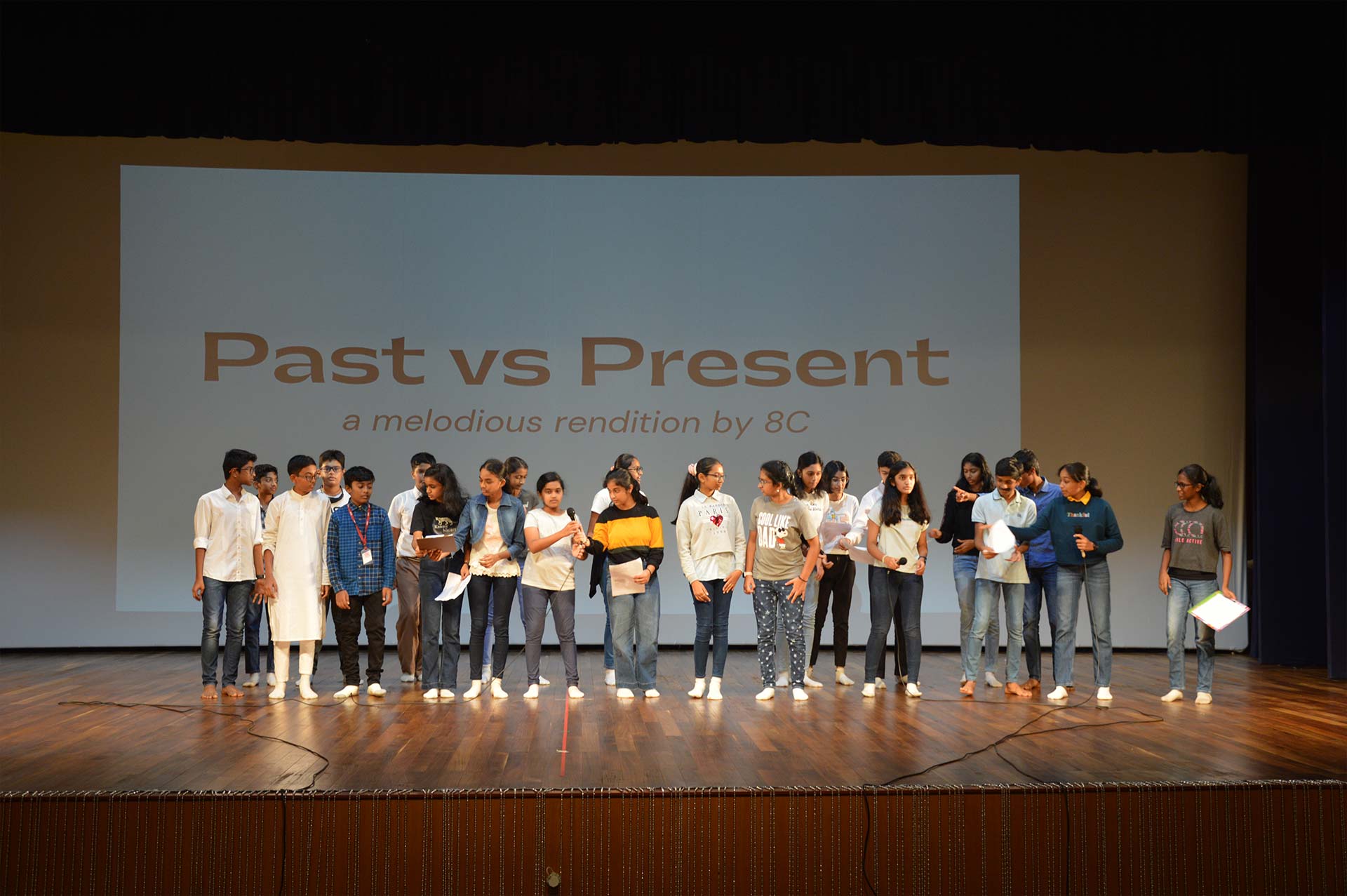 The assembly was interspersed with national and world news, and a quiz that challenged the audience. One of the highlights was the melodious medley of songs from different times rendered by the entire class. The audience were well entertained, and greatly appreciated the show. Students left the viewers with an uplifting thought: