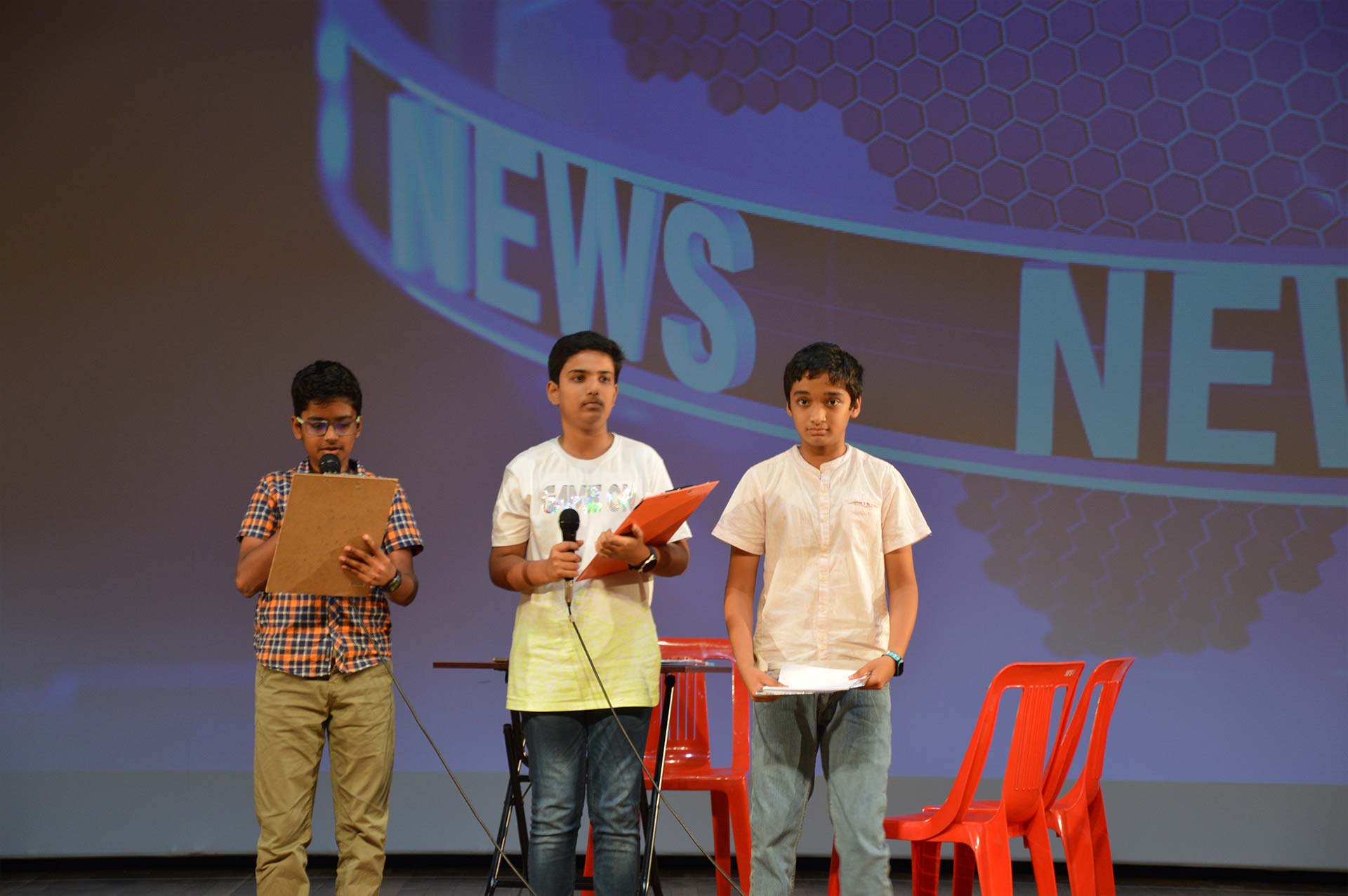 The news anchors shared updates of the happenings around us with International News, National News, State News and Sports News. This was followed by a quiz that engaged the audience. As always, the quiz witnessed enthusiastic participation from the audience.