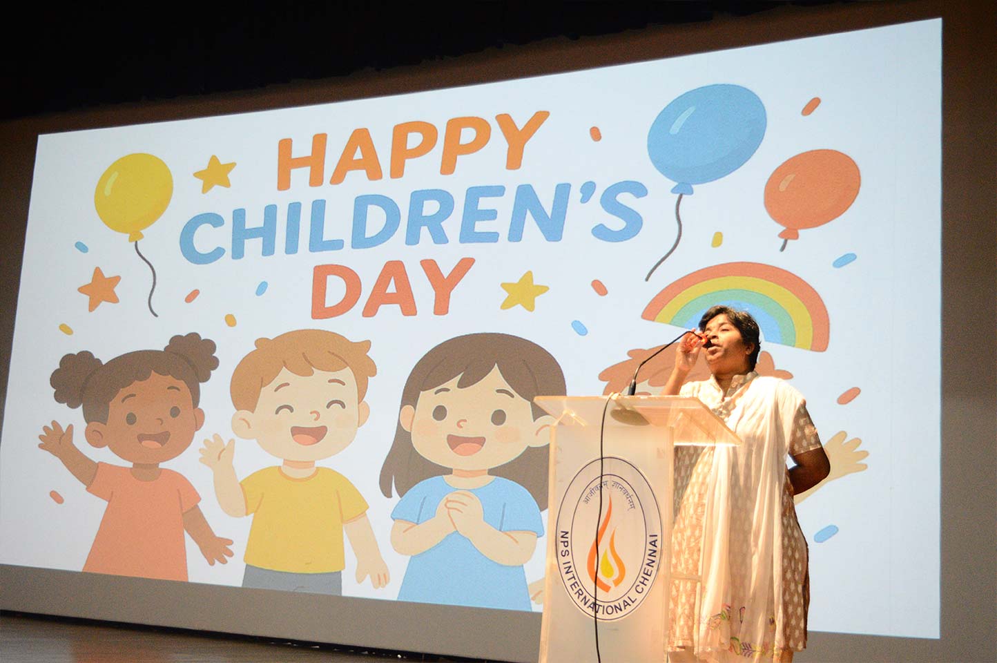 The Children’s Day celebration at NPS International Chennai was conducted with enthusiasm and a warm spirit of appreciation for the students. The programme began with a cordial welcome that set a cheerful tone for the morning. As the audience settled in, the senior year teachers opened the event with a vibrant dance performance. Their synchronised steps and energetic choreography immediately engaged the students and created a festive atmosphere.