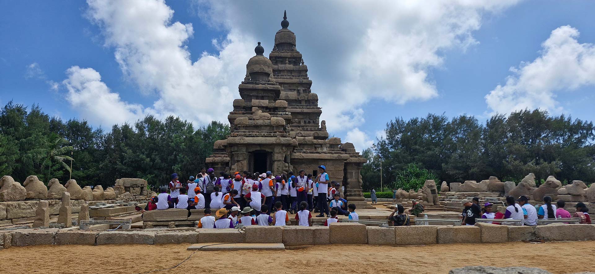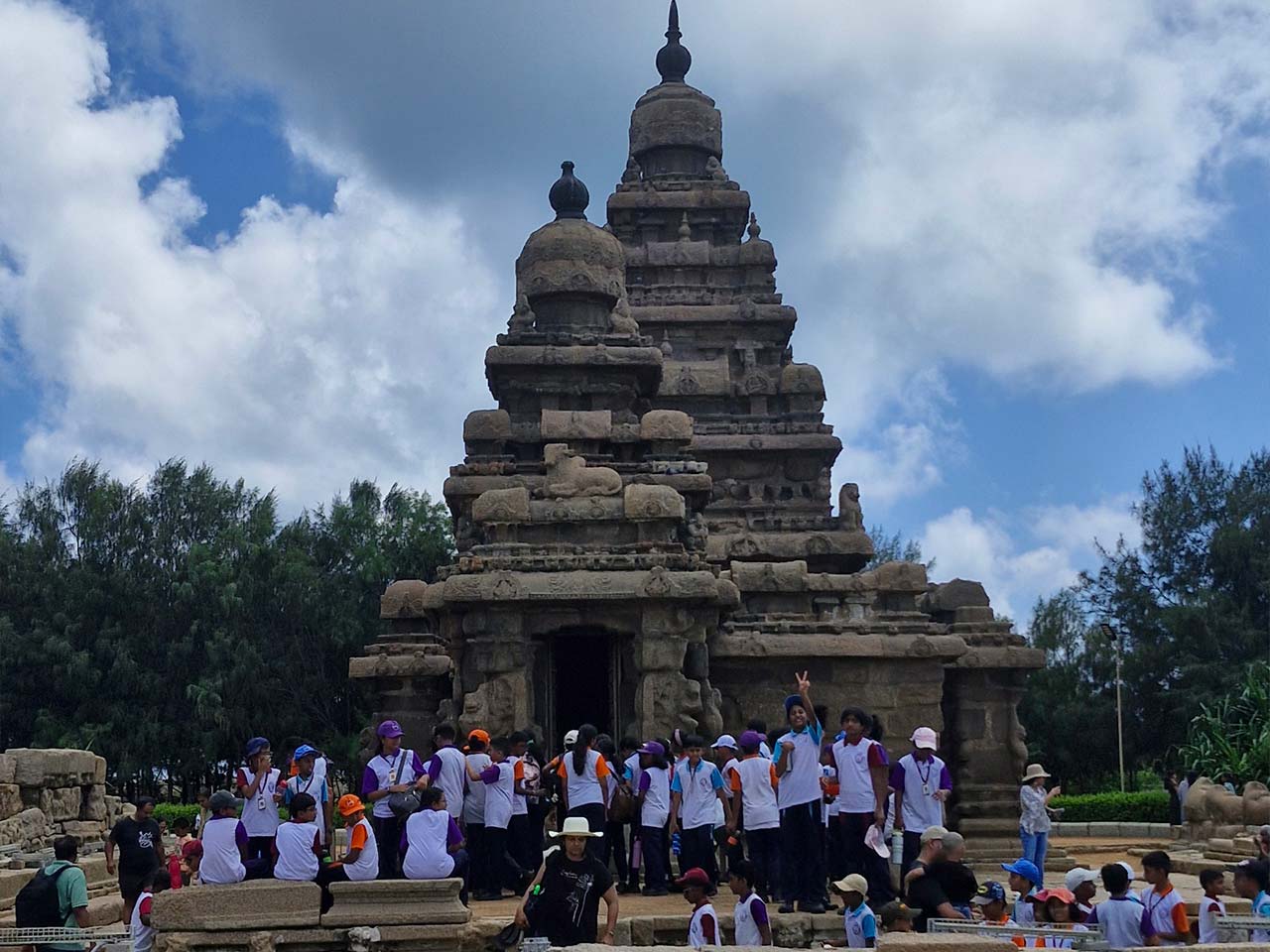 The group also explored the Tiger Caves, imagining their historical significance and ancient uses. After sightseeing, students enjoyed a delicious vegetarian buffet lunch at a nearby beach resort, followed by an afternoon of outdoor games and relaxation. The trip concluded with cheerful memories, making it both educational and enjoyable.