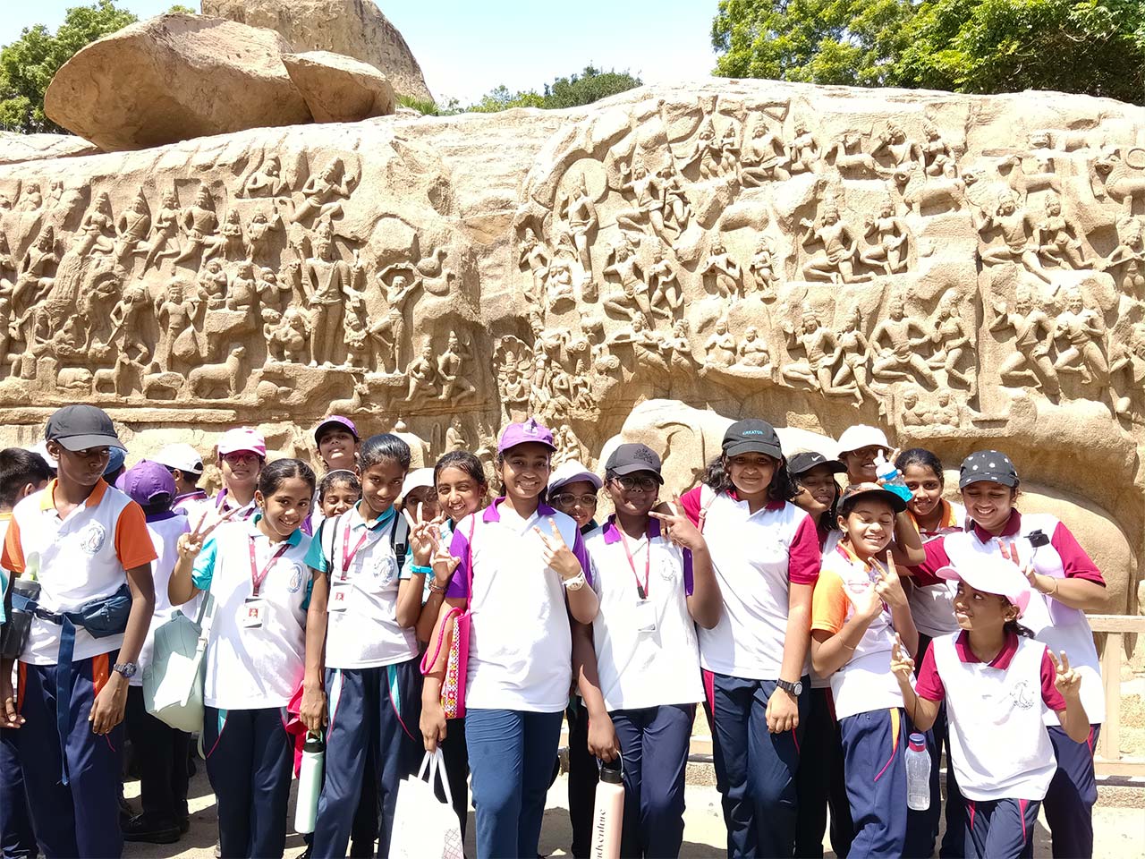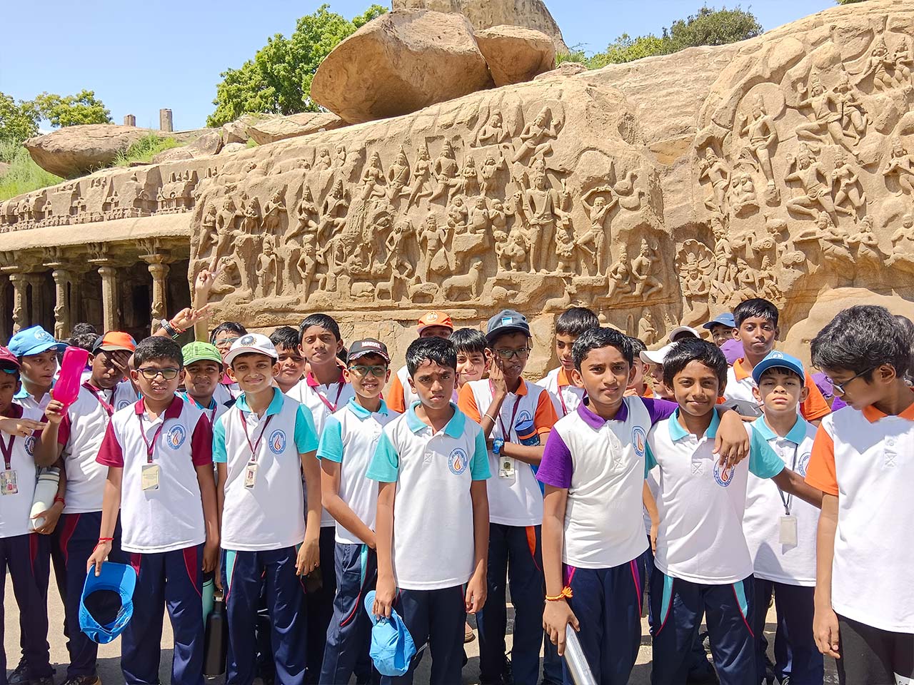 The students of Grade 6 went on an exciting educational trip to Mahabalipuram, a UNESCO World Heritage site, where history came alive through magnificent monuments and the scenic coastal setting. The journey was filled with enthusiasm as students explored the rich cultural heritage of the Pallava dynasty.