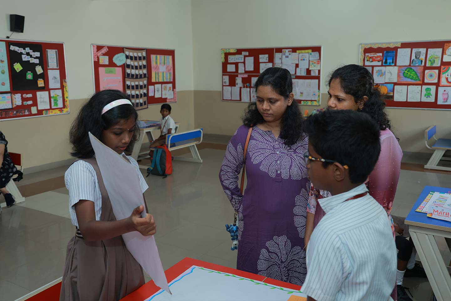 Creativity and cultural connections were highlighted through math in art, kolam patterns, symmetry activities, and origami shapes, while collaborative games and problem-solving tasks encouraged teamwork and critical thinking. Parents actively engaged with students by asking questions and participating in challenges, making the learning experience more interactive and meaningful.