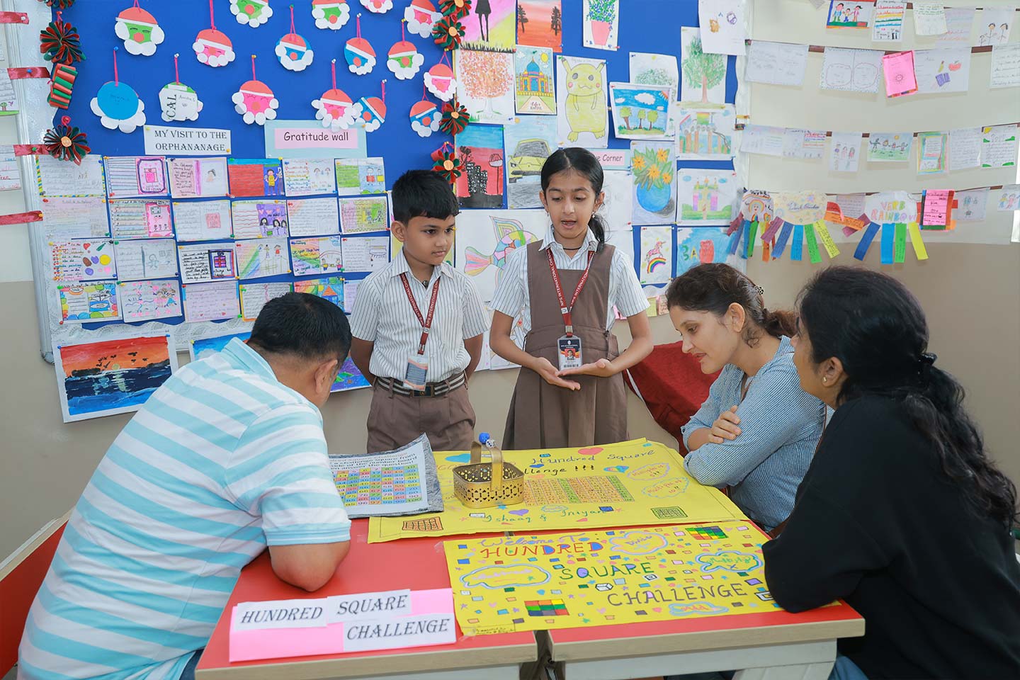 Across all grades, students confidently explained mathematical concepts through hands-on activities, puzzles, and real-life applications. Younger students focused on basic number sense, patterns, time, measurement, fractions, and data handling, while older students explored operations, factors and multiples, decimals, fractions, geometry, data representation, and financial literacy.