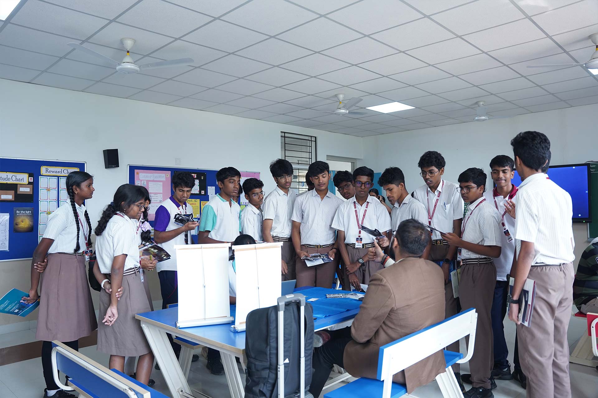 Science Adventure Design Challenge, designed for the students from Grades 6 to 8, involved teams constructing a miniature self-propelled car using provided materials within a time limit. This event tested both scientific understanding and dexterity. Every team was deeply involved in scanning through the instructions to build their car, putting each part together. They all enjoyed watching each other’s demonstration as it was sheer delight to watch the cars propel on their own. NPS Gopalapuram won first place, with Navadisha Montessori and Sishya OMR securing second and third positions.