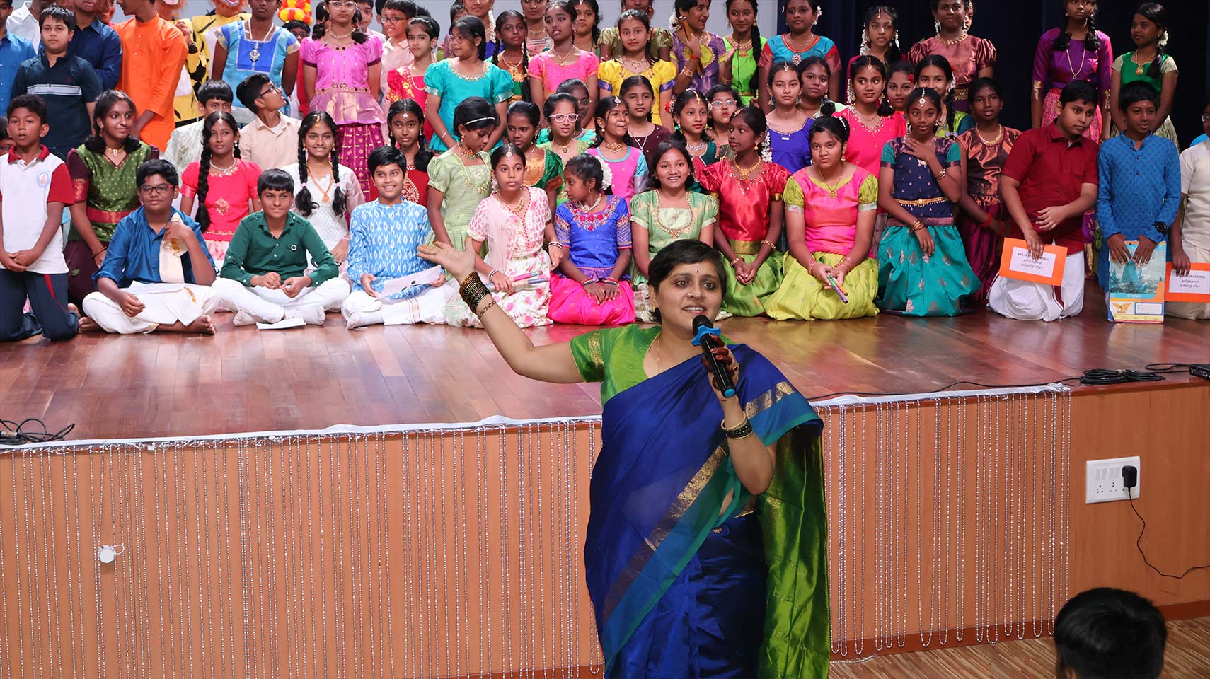 The Tamil Day celebration began on a graceful note with the rendition of Tamil Thai Vazhthu, filling the auditorium with pride and reverence for the Tamil language. Students from Grades 5 to 8, numbering around 120, participated enthusiastically in the programme. The performances that followed beautifully reflected the richness of Tamil culture. Classical Bharatanatyam and lively folk dances captivated the audience, with the colourful costumes and expressive movements adding charm to the occasion.