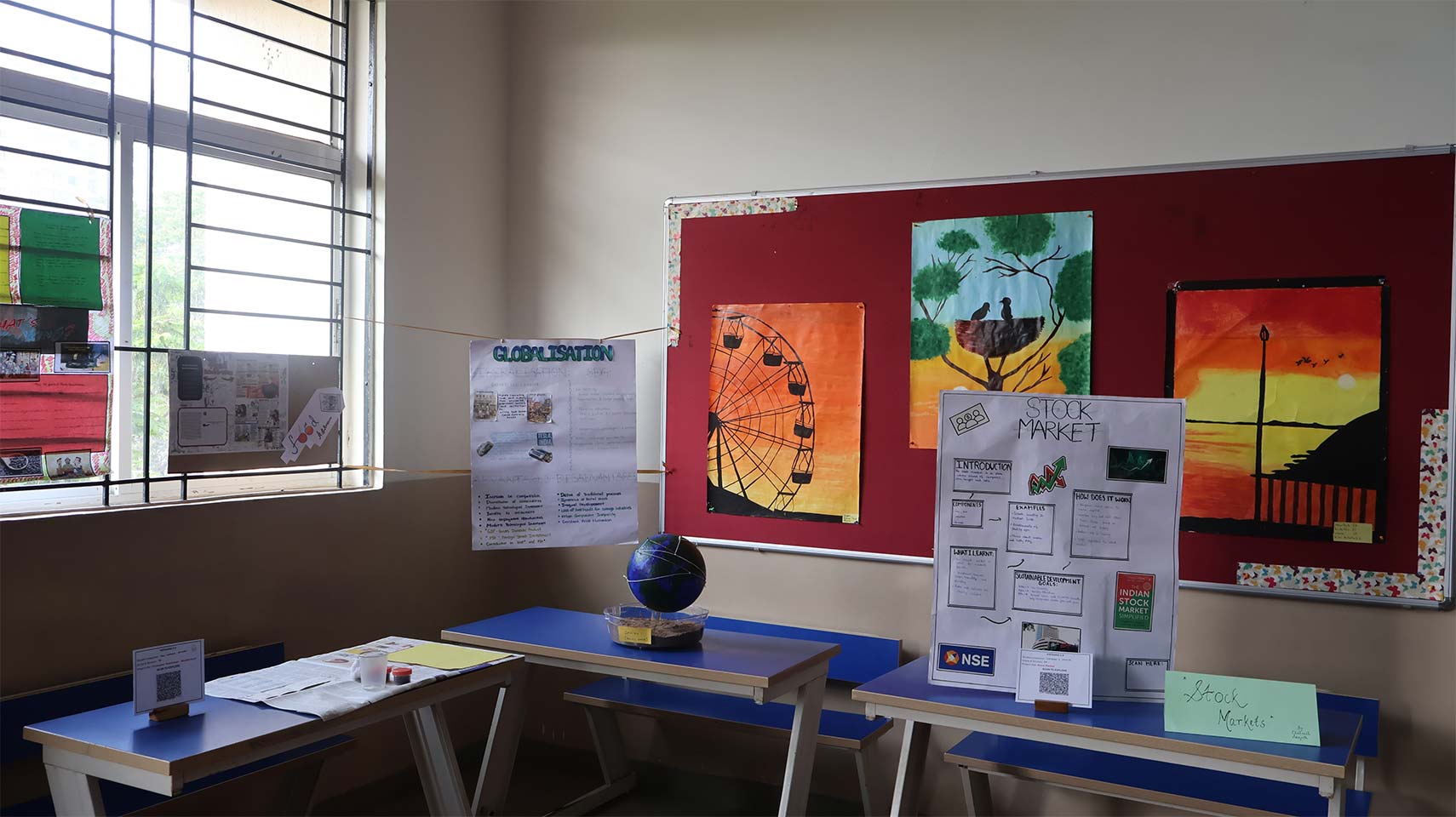 Grade 9 presented a unique silent learning visibility experience, where student projects were displayed with thoughtfully designed audio-visual support. Parents explored the exhibits at their own pace, using earphones to engage with recorded explanations, allowing for an immersive and self-guided understanding of the concepts.